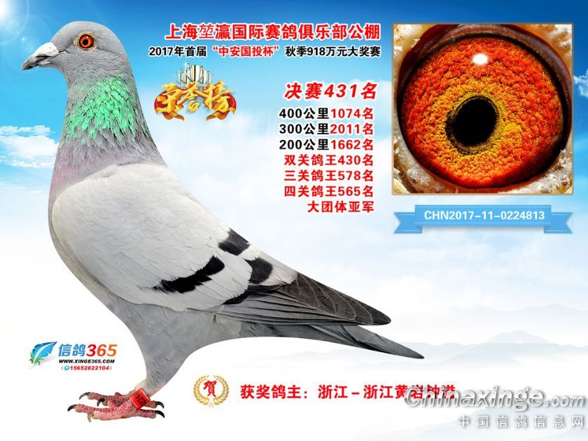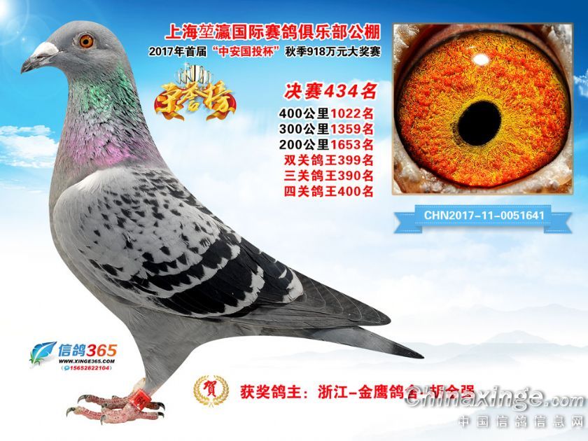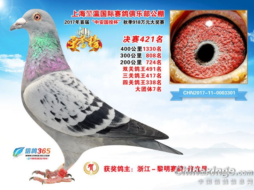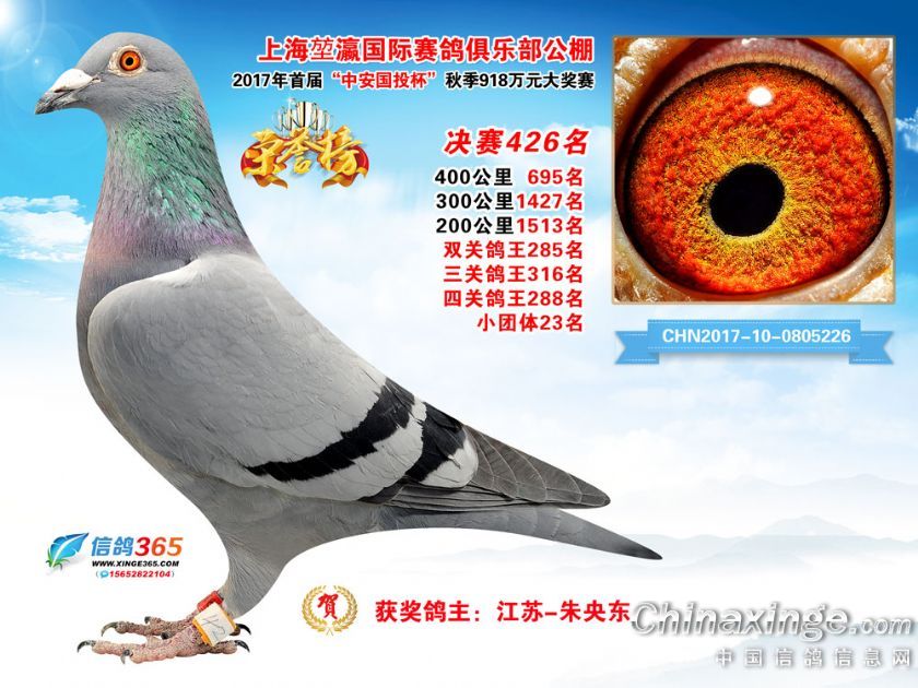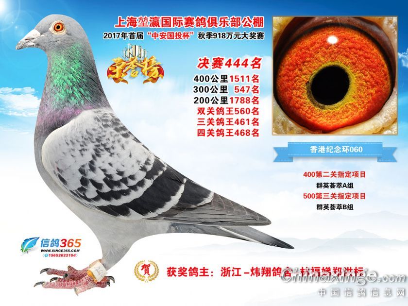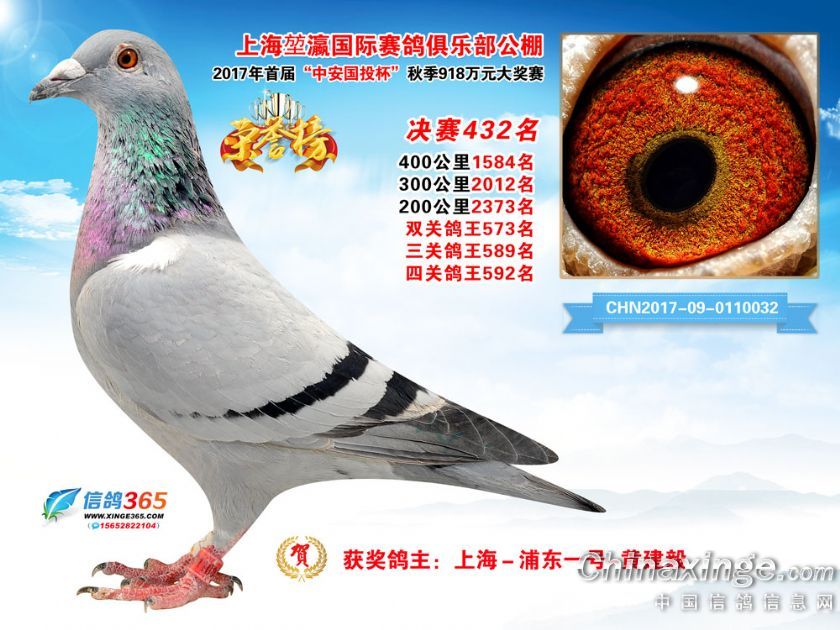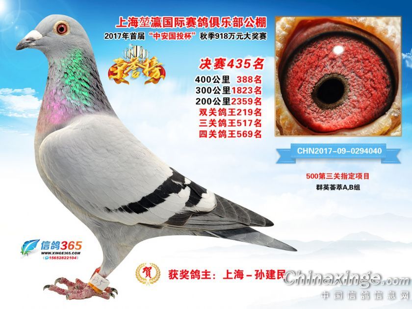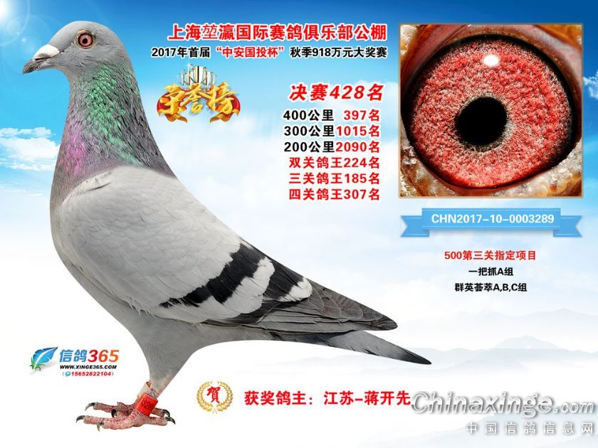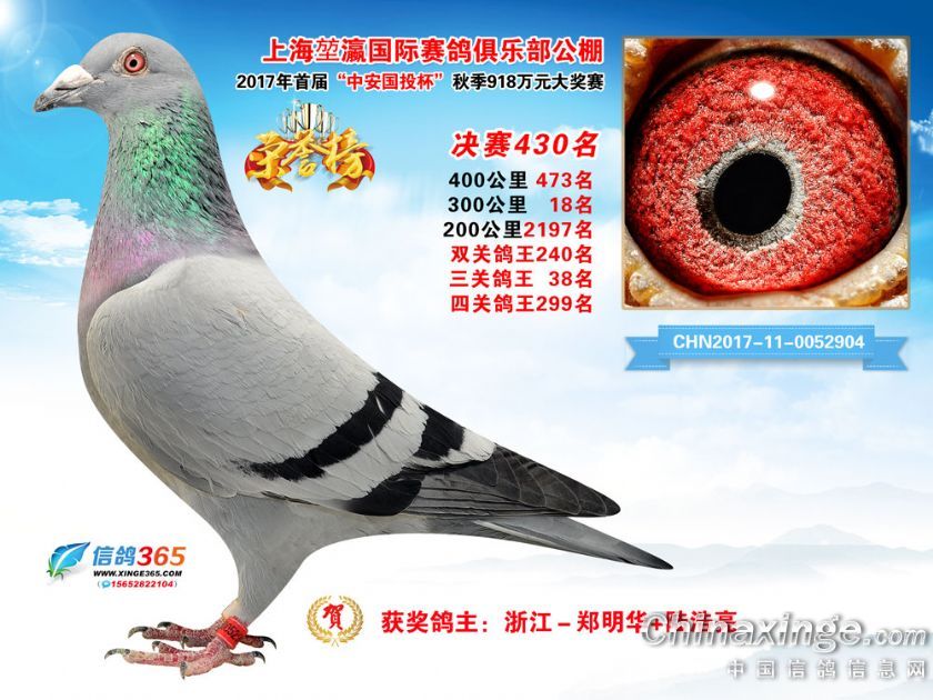 作品说明: 上海堃瀛国际赛鸽俱乐部公棚2017年获奖鸽421-450名