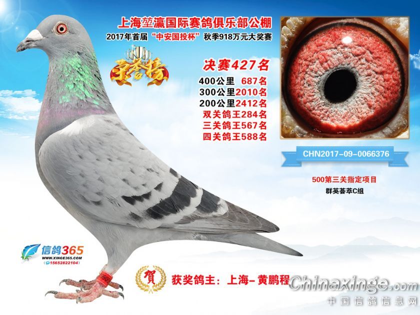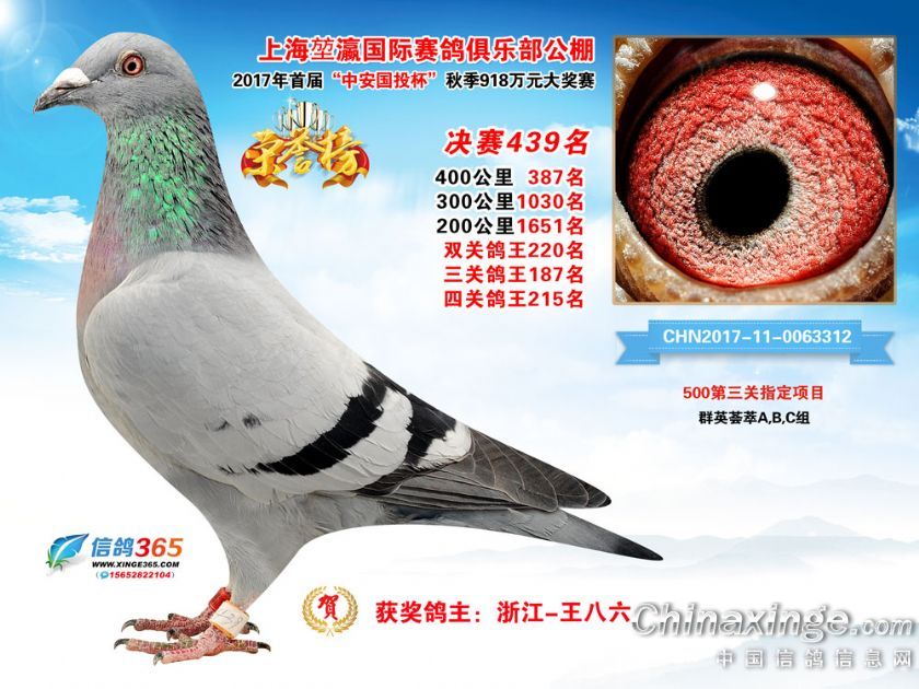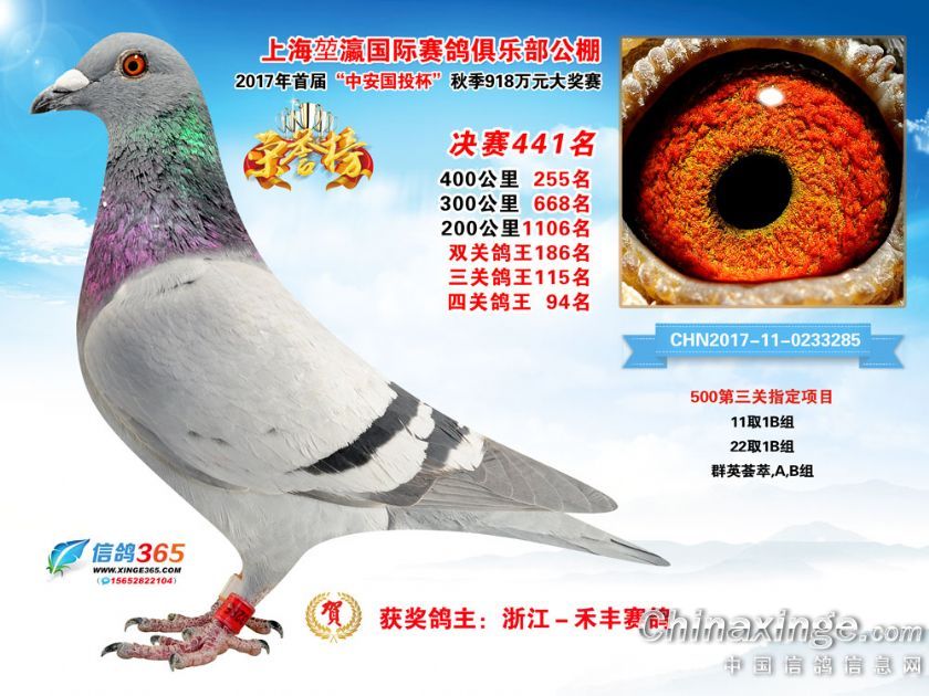 上海堃瀛国际赛鸽俱乐部公棚2017年获奖鸽421-450名