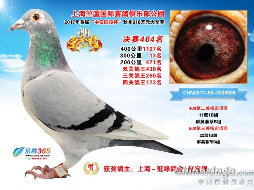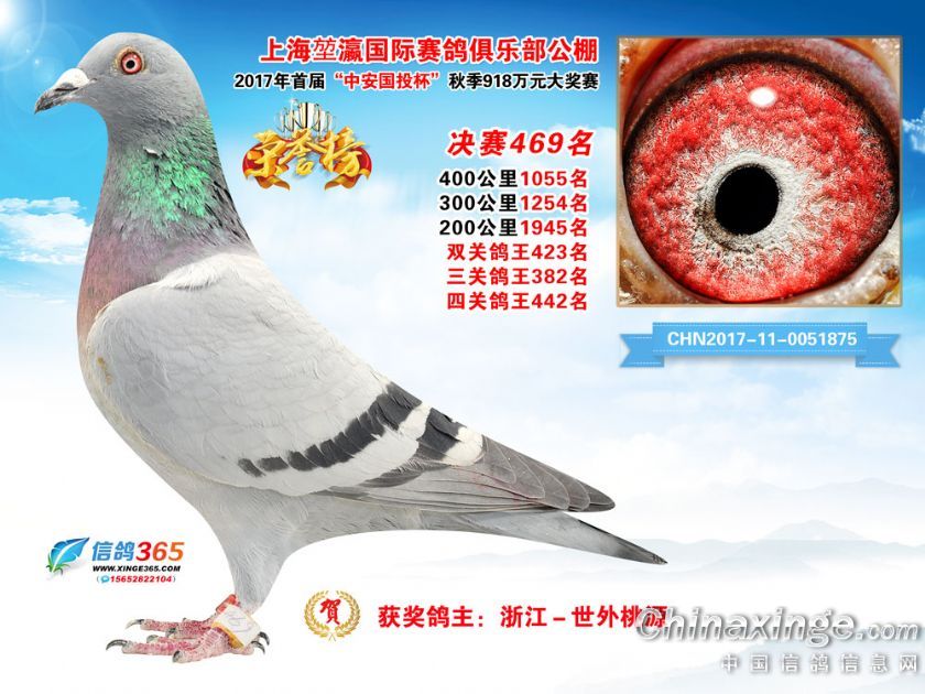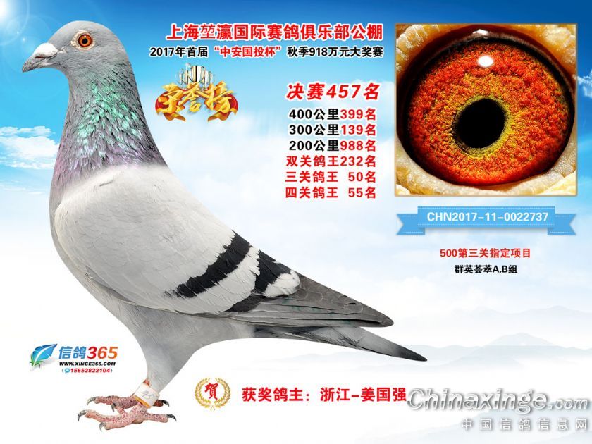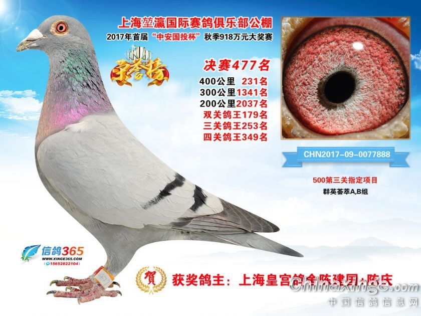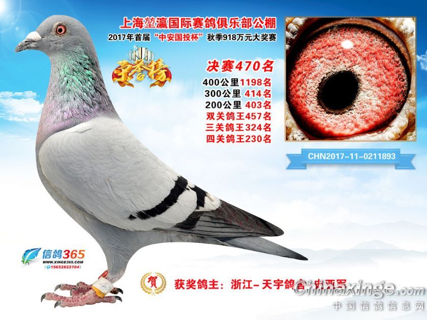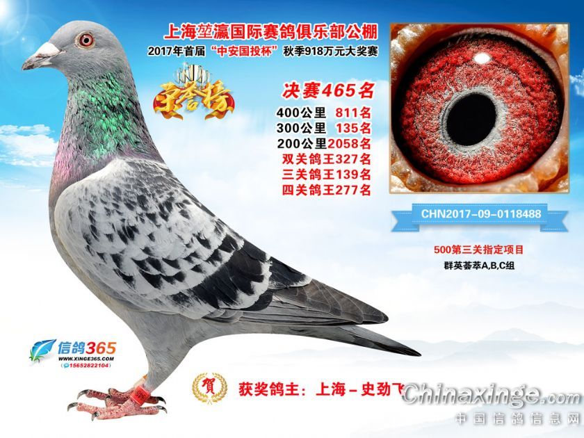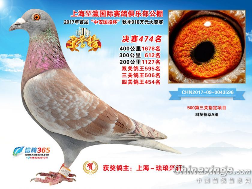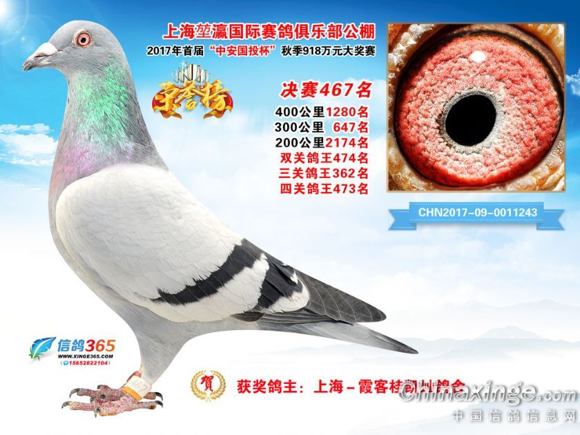 作品说明: 上海堃瀛国际赛鸽俱乐部公棚2017年获奖鸽451-480名