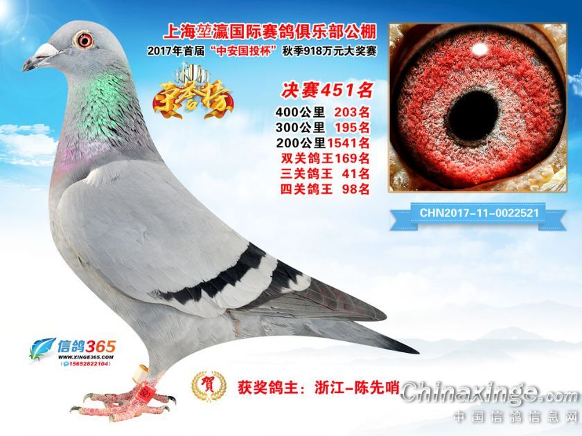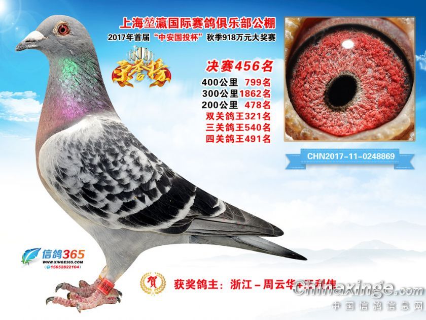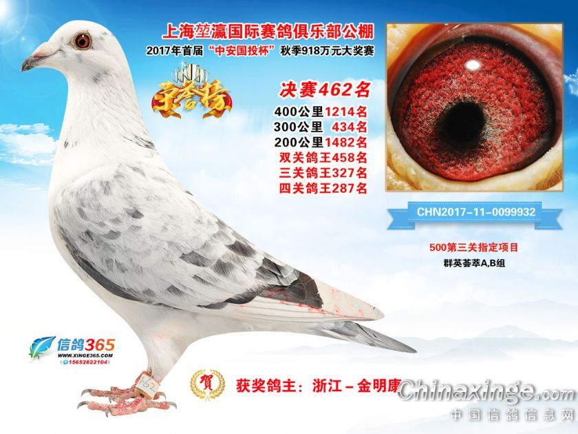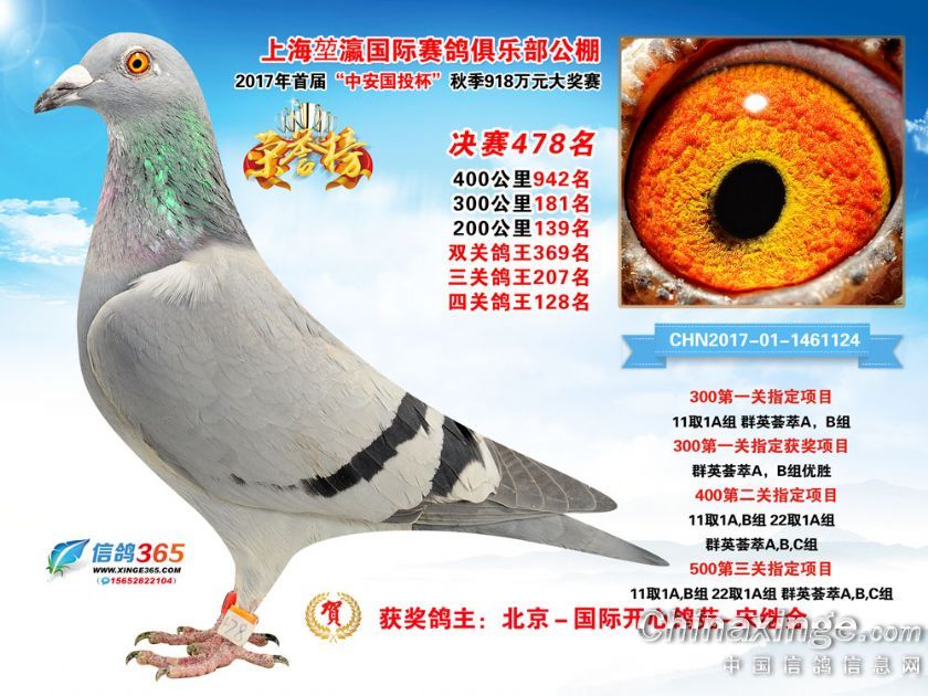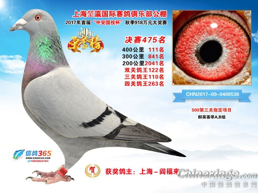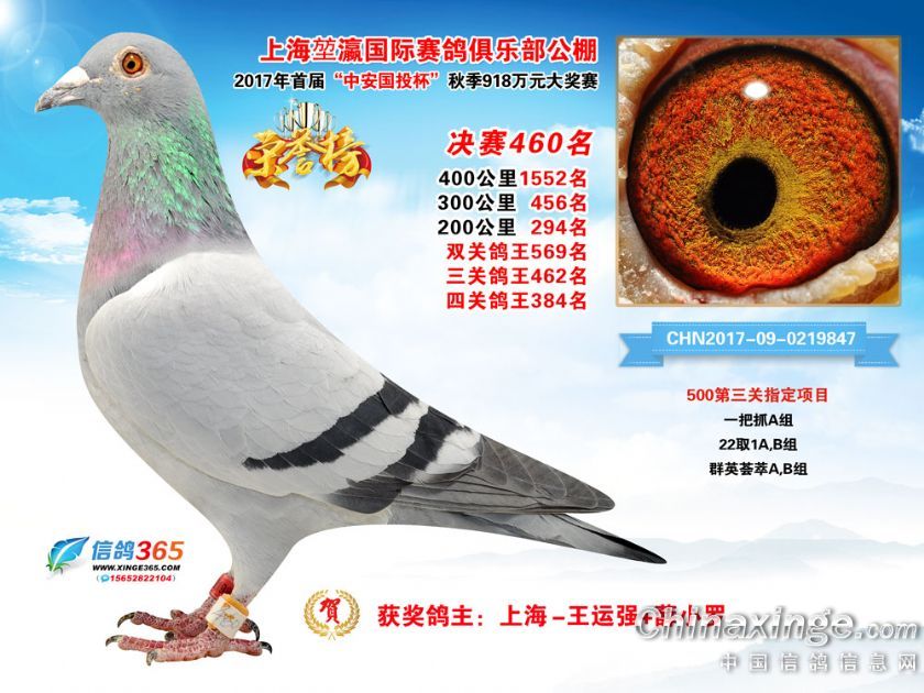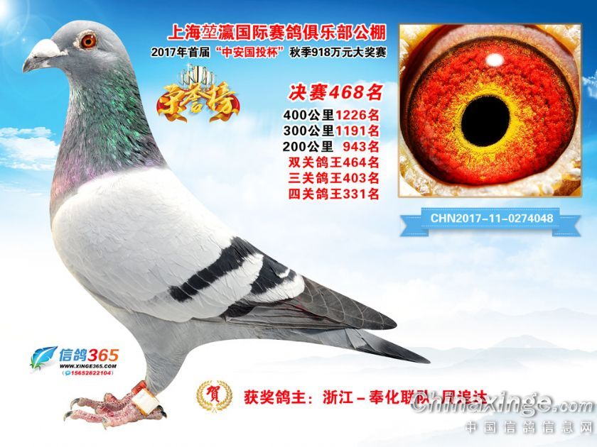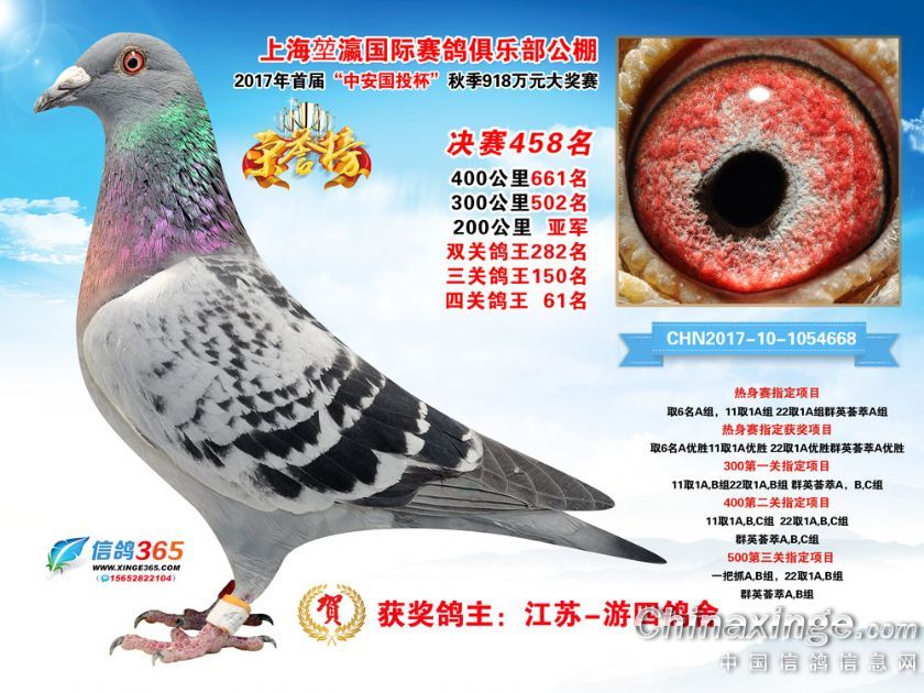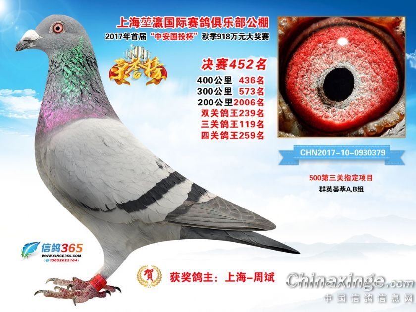 作品说明: 上海堃瀛国际赛鸽俱乐部公棚2017年获奖鸽451-480名