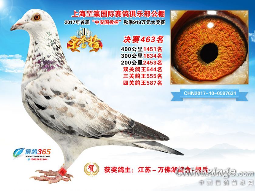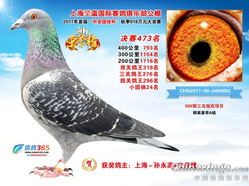 上海堃瀛国际赛鸽俱乐部公棚2017年获奖鸽451-480名
