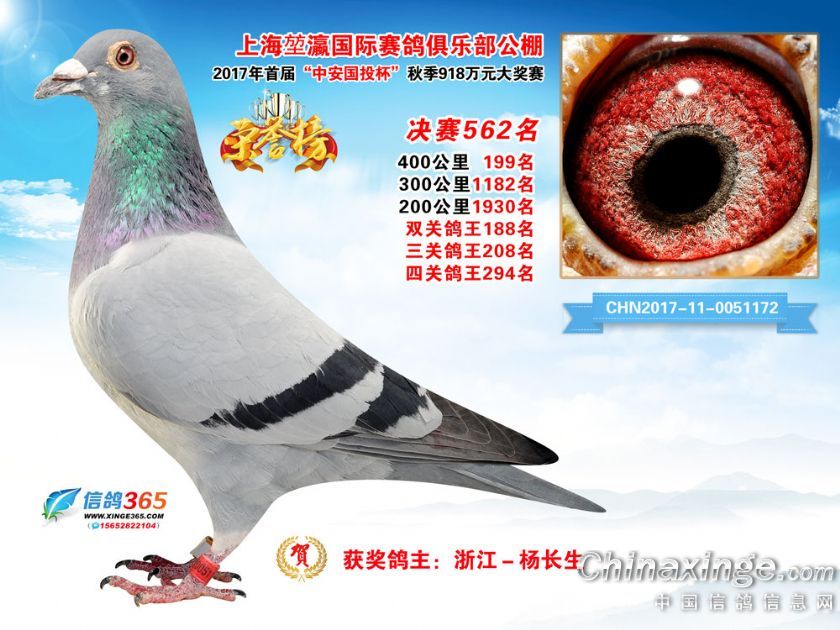 作品说明: 上海堃瀛国际赛鸽俱乐部公棚2017年获奖鸽541-570名