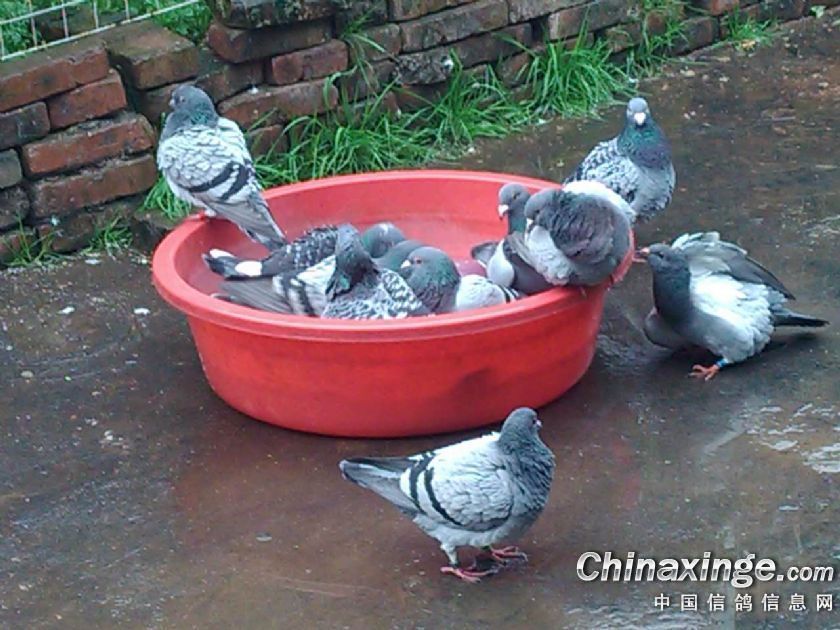 作品说明: 连续几天的下雨,今天发现有些鸽子开始在脏水里面洗澡了,怕染病,开笼放水让你们 洗舒服。
