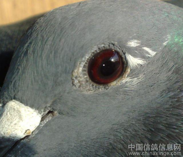 头上有白点,不好,如果是没有一点白色的,是这种眼,哪绝对是只优良的种鸽 |
