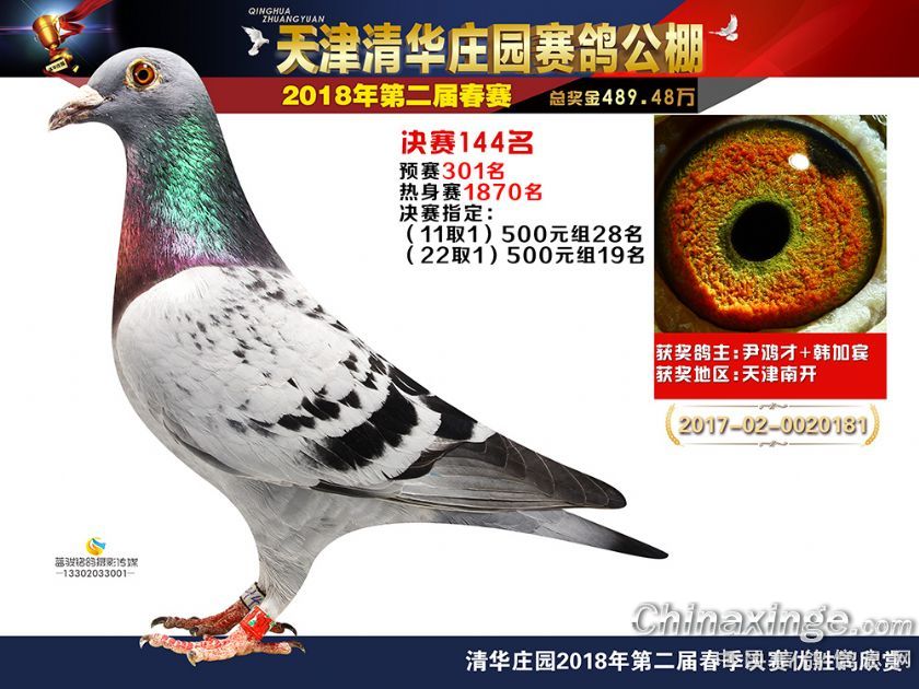 《天津清华庄园赛鸽公棚2018决赛奖鸽欣赏(121-180)名 》