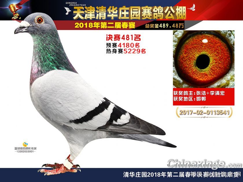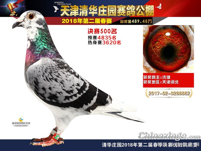 作品说明: 《天津清华庄园赛鸽公棚2018决赛奖鸽欣赏(481-500)名 》
