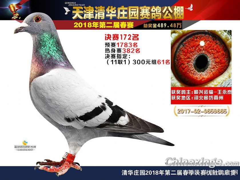 作品说明: 《天津清华庄园赛鸽公棚2018决赛奖鸽欣赏(121-180)名 》