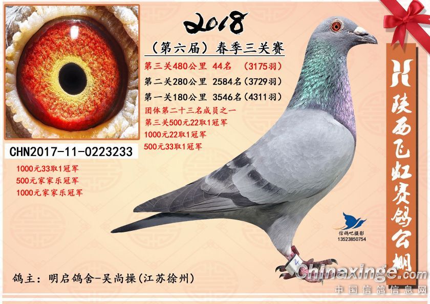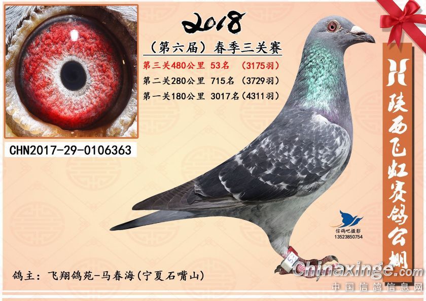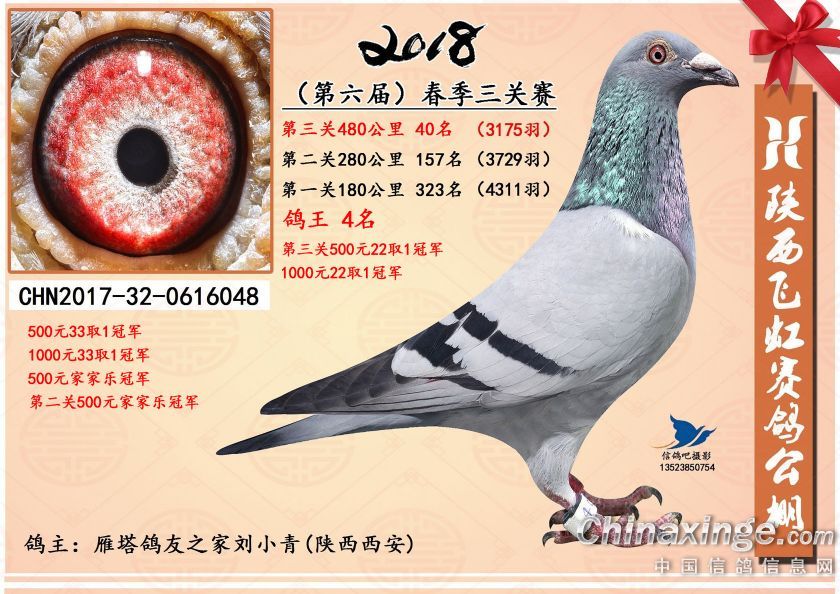 陕西飞虹公棚2018年第六届春季三关赛获奖鸽照片31-60名
