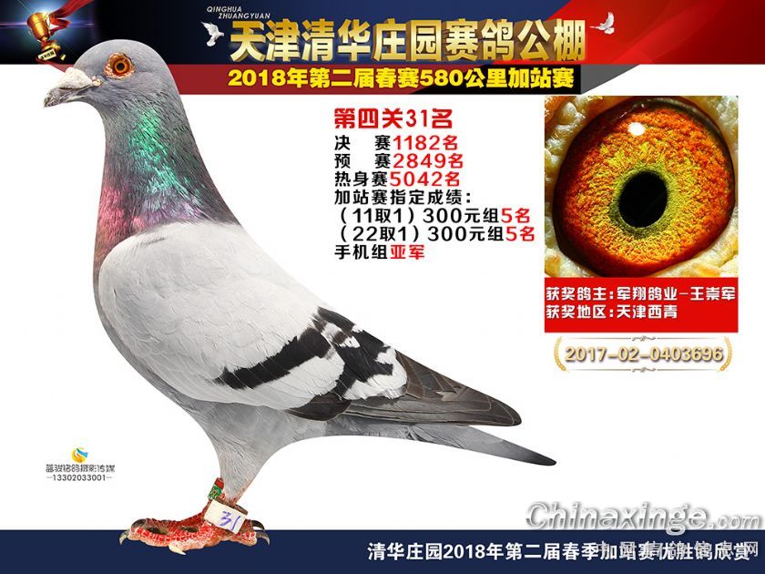 xuesijie 原创 2018/5/15 19:35:12 《《天津清华庄园赛鸽公棚2018加站赛奖鸽欣赏(1-50)名 》》 0 93