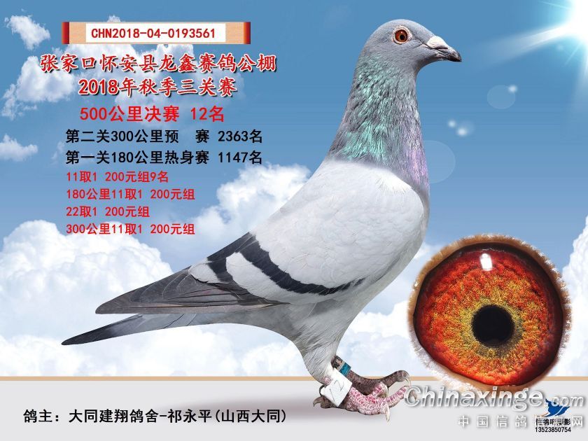 龙鑫公棚2018年秋季500公里决赛获奖鸽欣赏1-30名