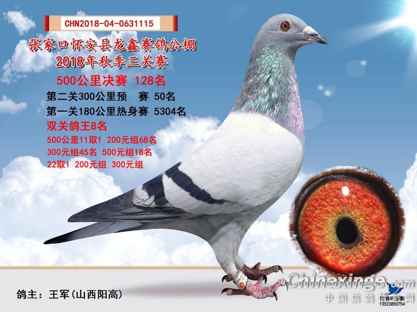 龙鑫公棚2018年秋季500公里决赛获奖鸽欣赏121-150名