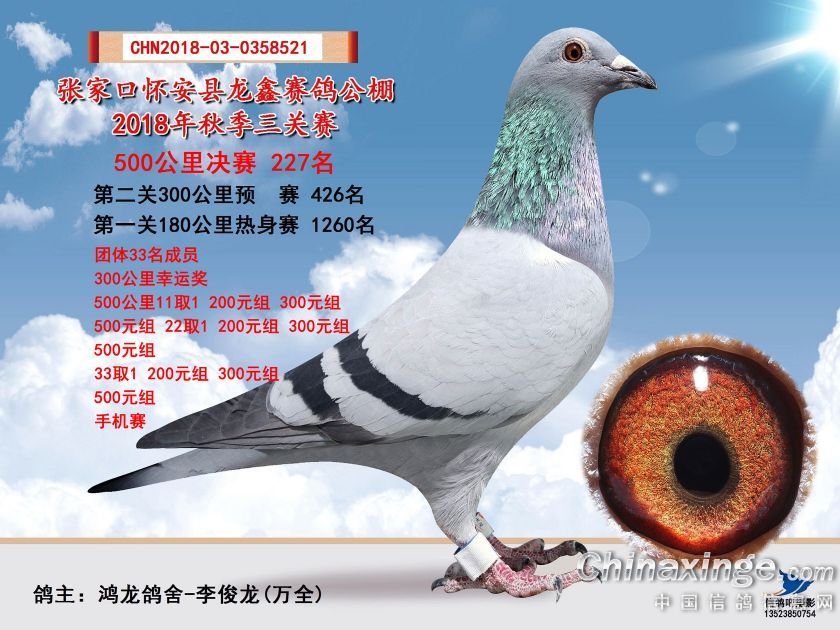龙鑫公棚2018年秋季500公里决赛获奖鸽欣赏211-240名