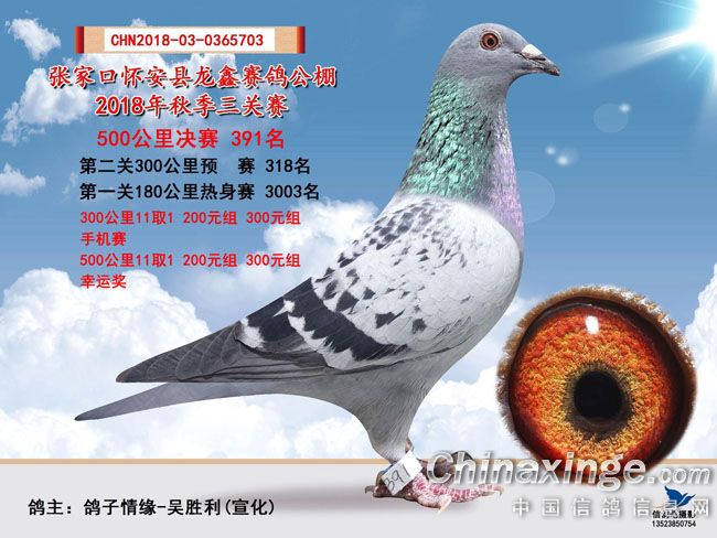 龙鑫公棚2018年秋季500公里决赛获奖鸽欣赏391-420名
