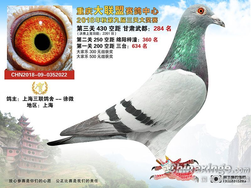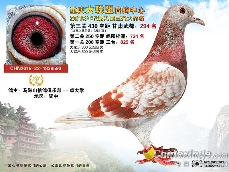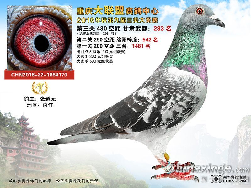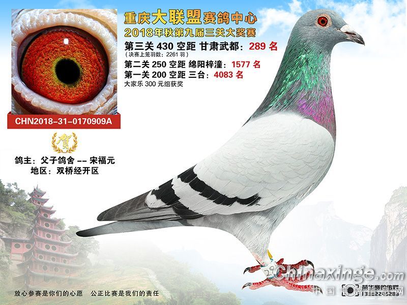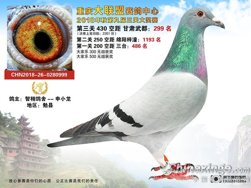 重庆大联盟2018年决赛获奖鸽281名-300名
