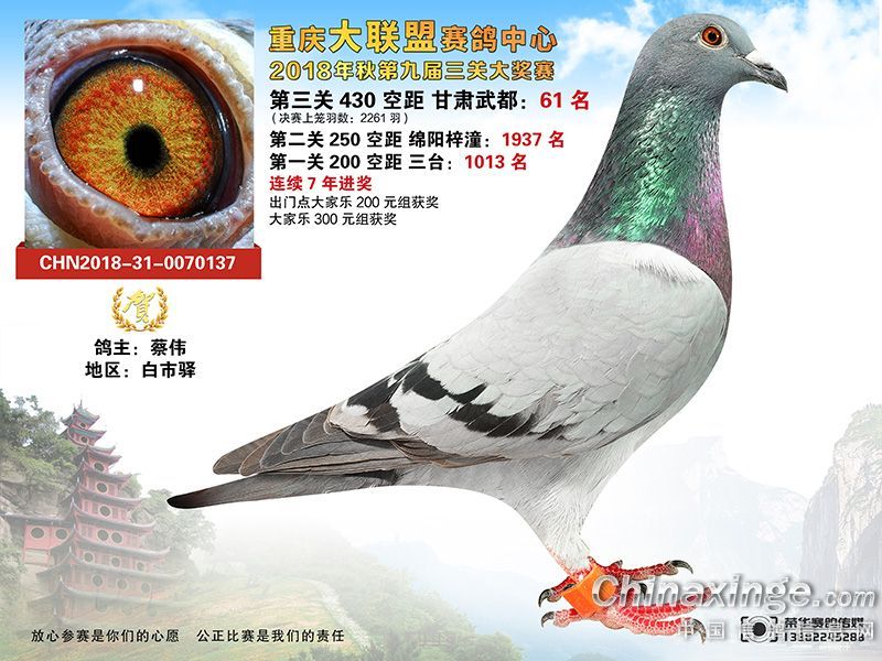 作品说明: 重庆大联盟2018年决赛获奖鸽