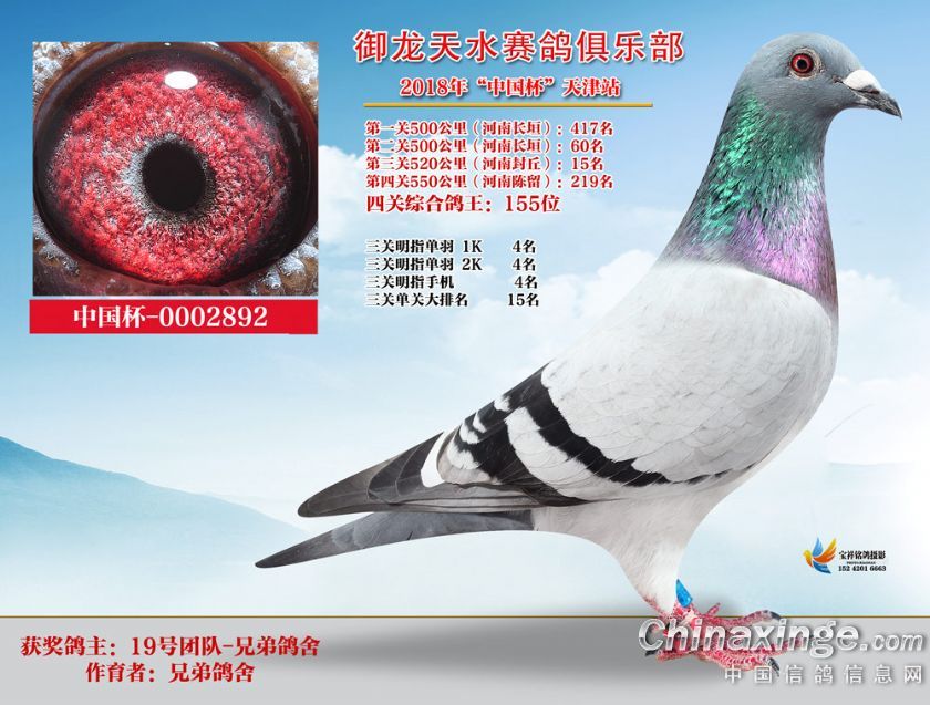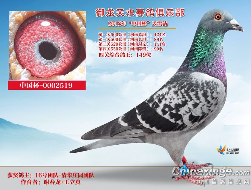 2018“中国杯”天水九大联盟国际赛鸽俱乐部获奖鸽照片121-180名