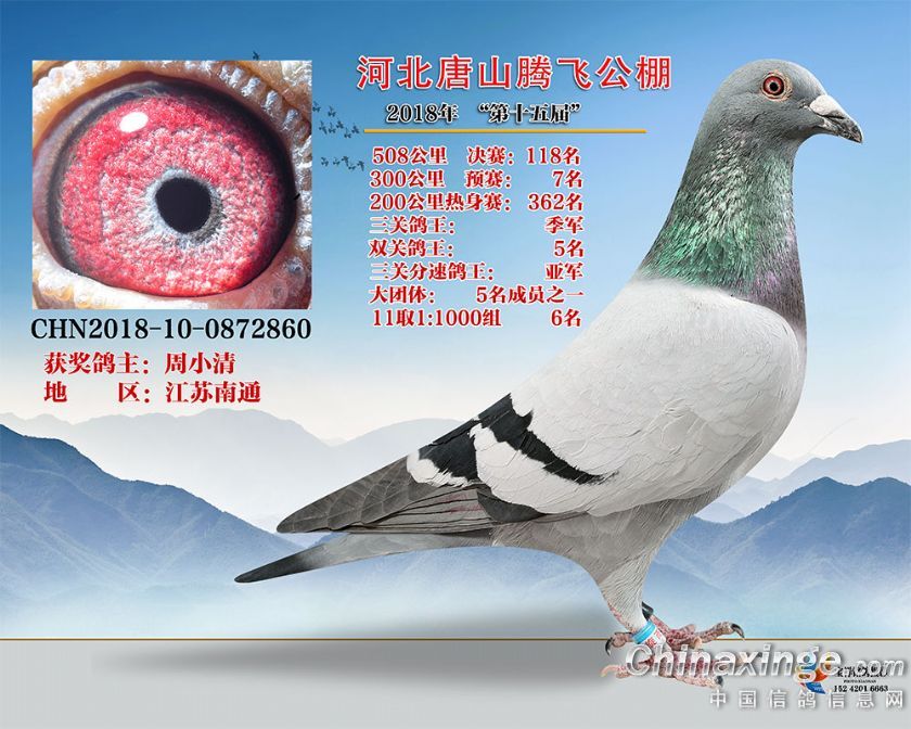 作品说明: 2018年508公里决赛获奖鸽鉴赏101名至150名