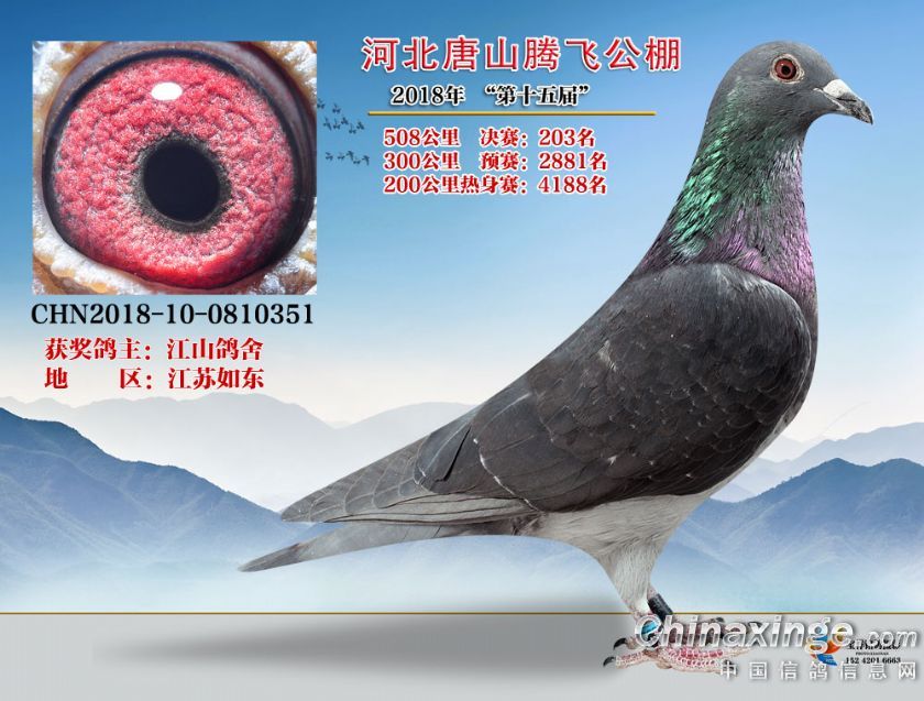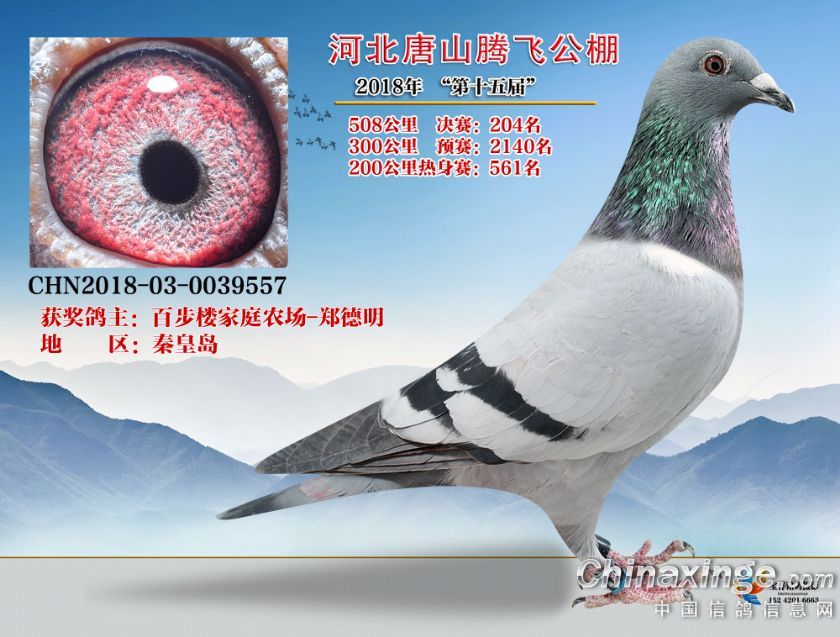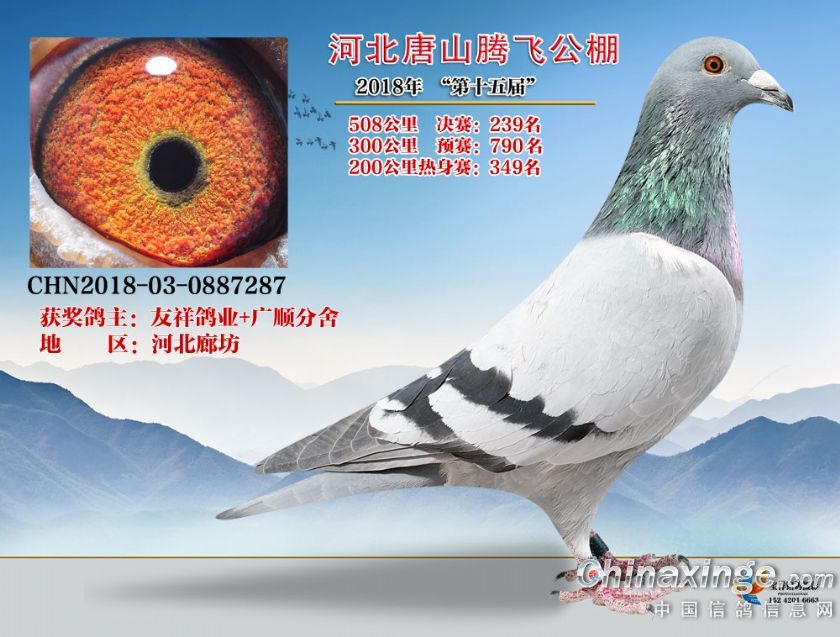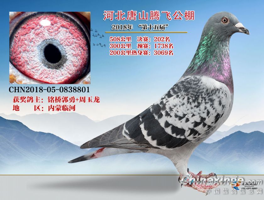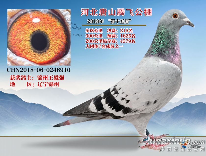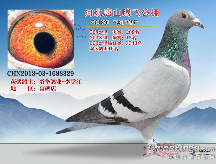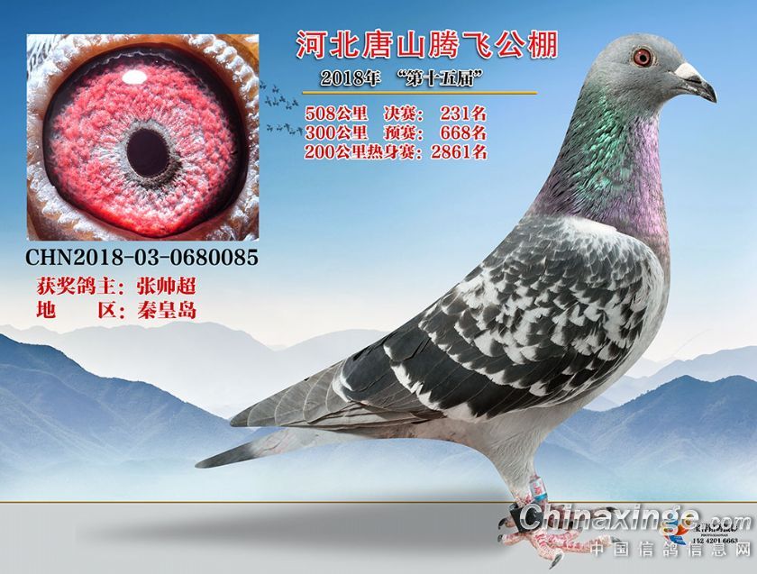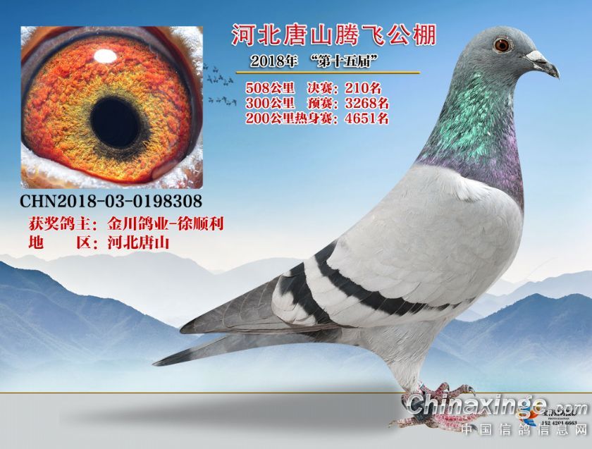 作品说明: 2018年508公里决赛获奖鸽鉴赏201名至250名