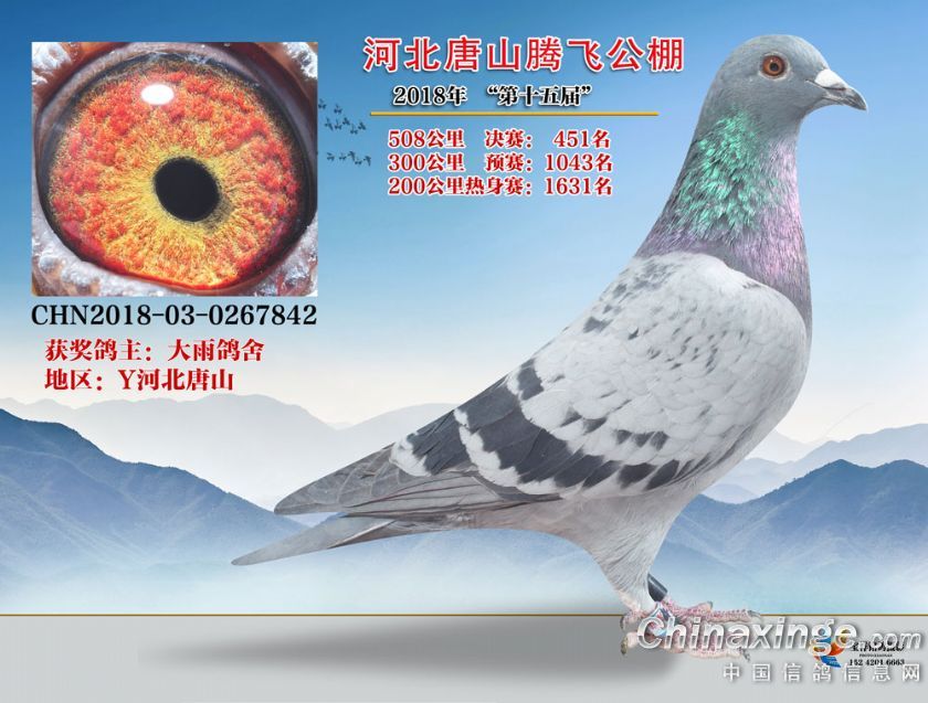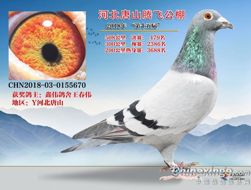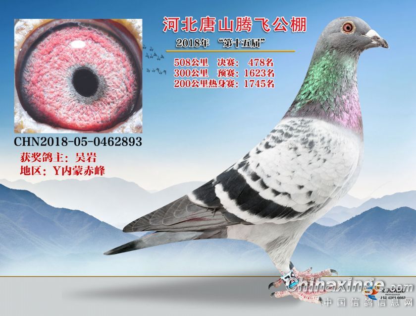 作品说明: 2018年508公里决赛获奖鸽鉴赏451名至500名