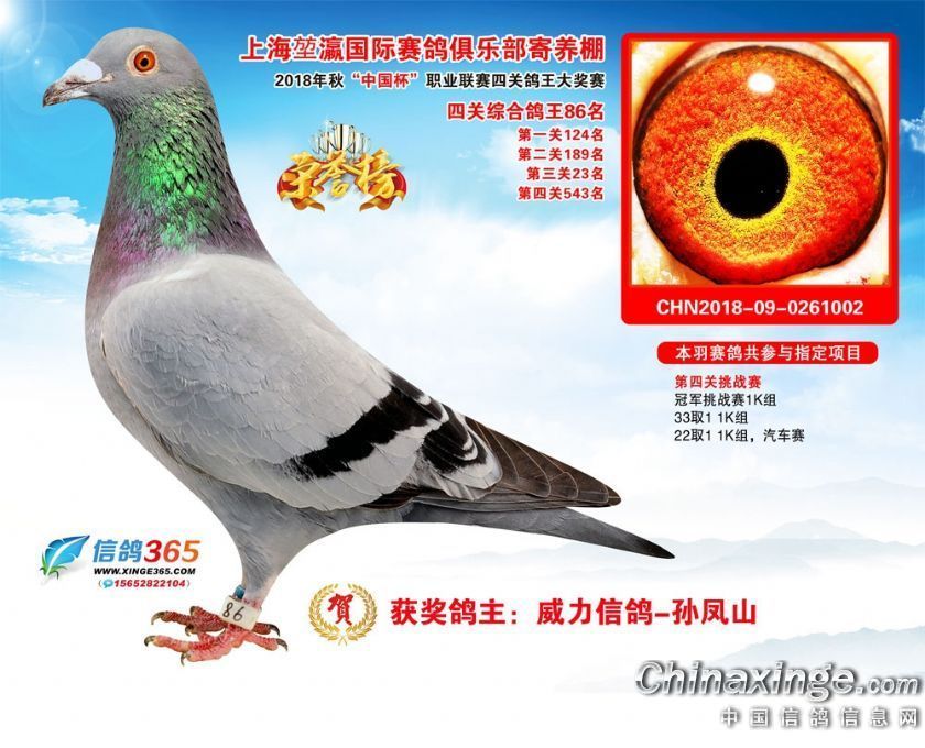 2018年秋“中国杯”职业联赛(上海堃瀛站)第二届四关鸽王获奖鸽61-90名