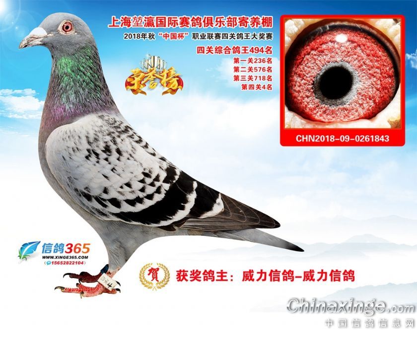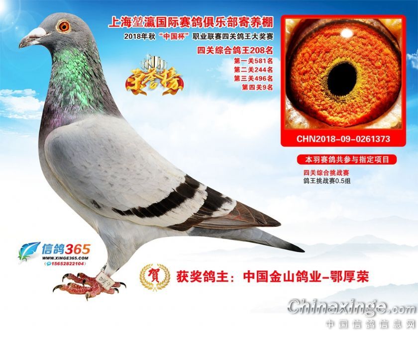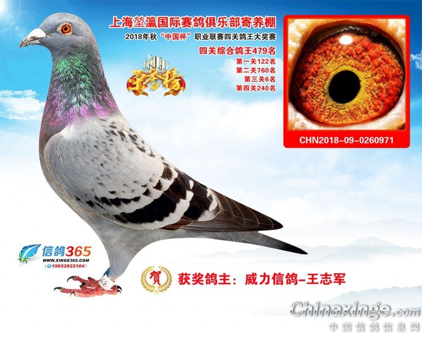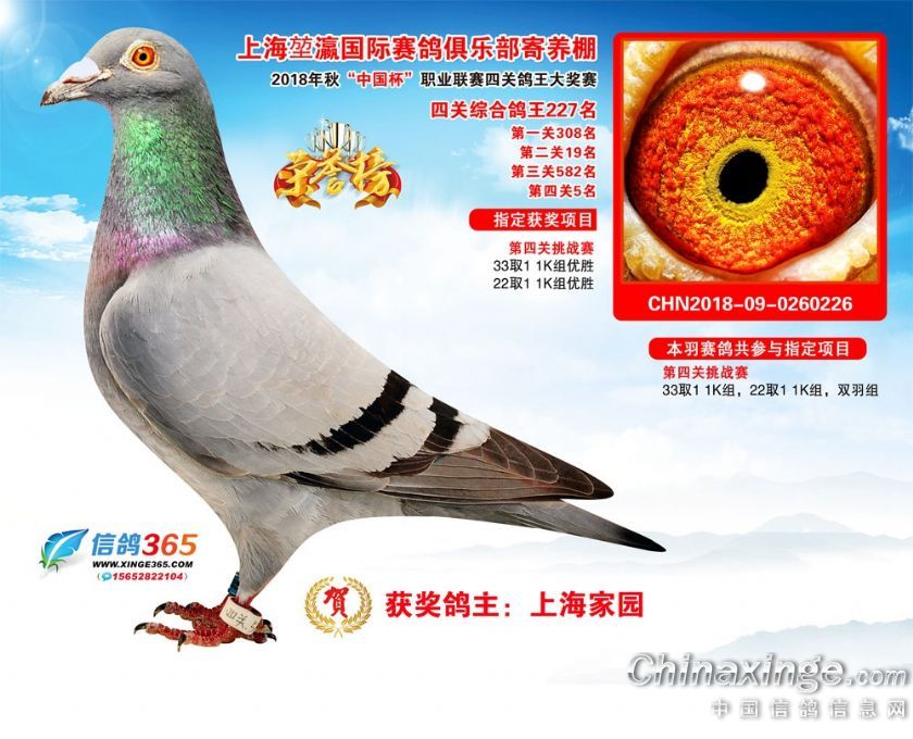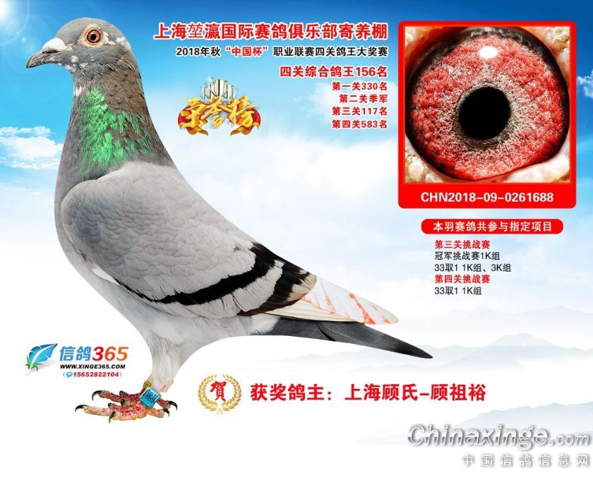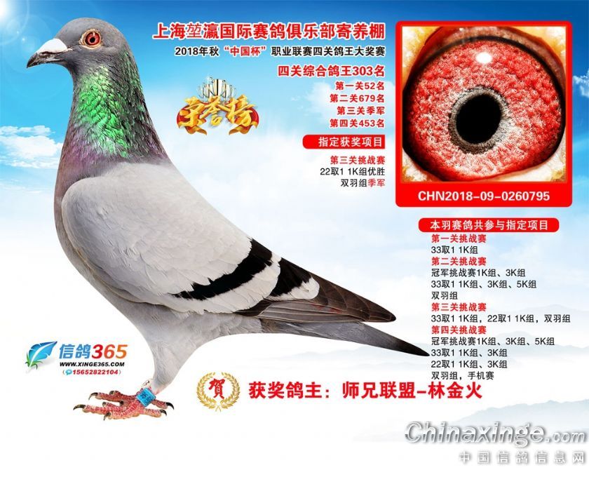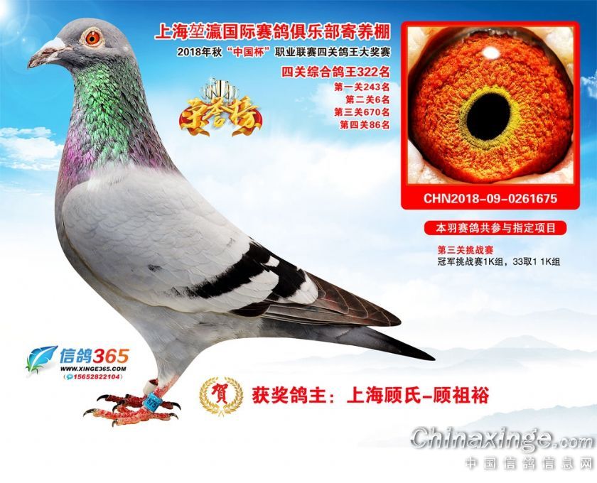作品说明: 2018年秋“中国杯”职业联赛(上海堃瀛站)第二届单关获奖鸽