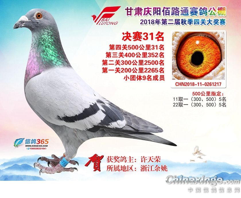 甘肃庆阳佰路通赛鸽公棚2018年获奖鸽31-60名