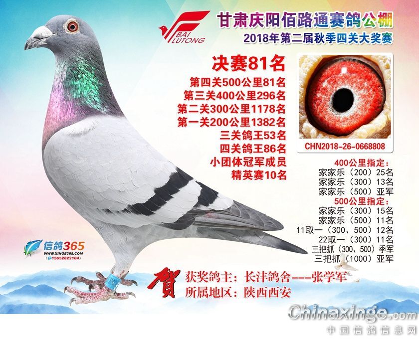 作品说明: 甘肃庆阳佰路通赛鸽公棚2018年获奖鸽61-90名