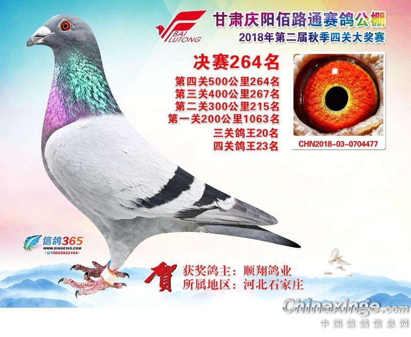 作品说明: 甘肃庆阳佰路通赛鸽公棚2018年获奖鸽241-270名