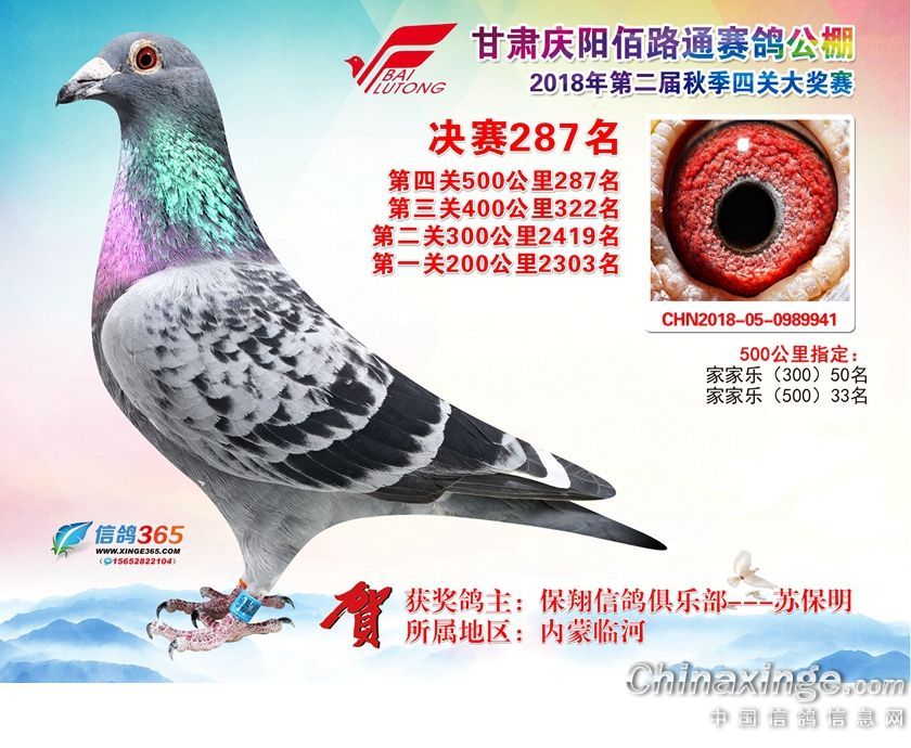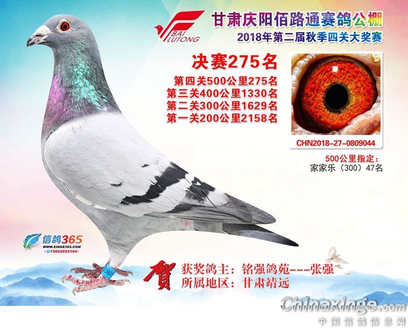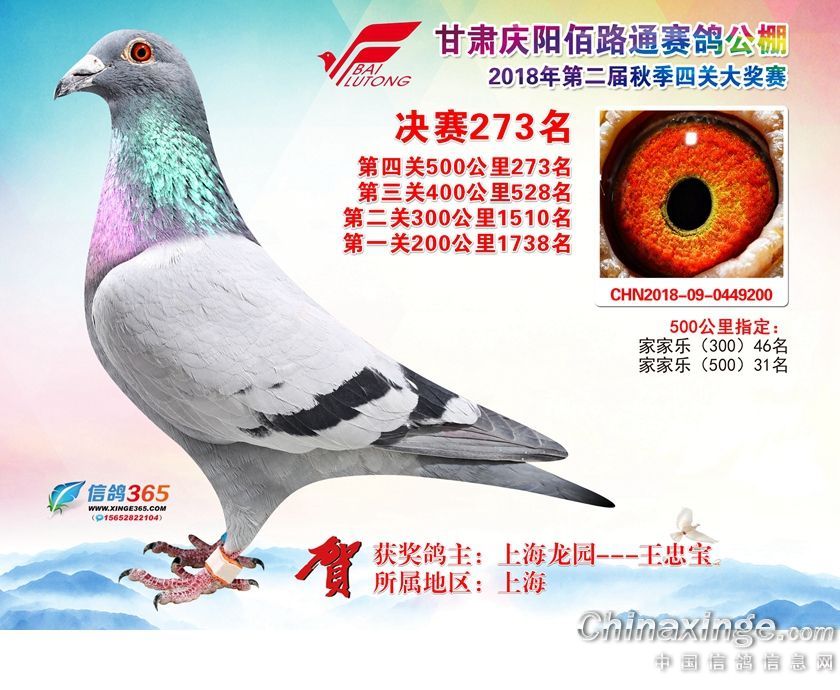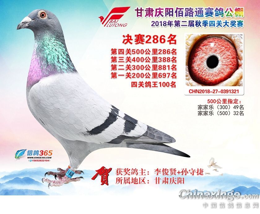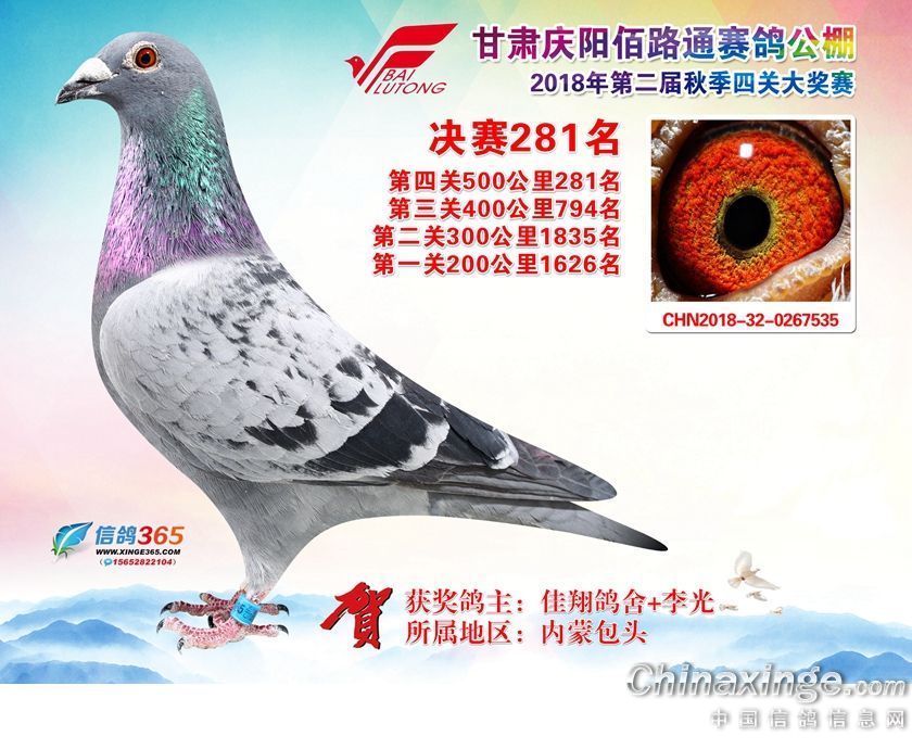 甘肃庆阳佰路通赛鸽公棚2018年获奖鸽271-300名