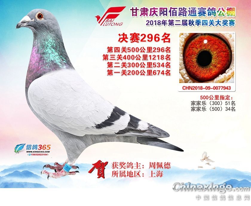 作品说明: 甘肃庆阳佰路通赛鸽公棚2018年获奖鸽271-300名