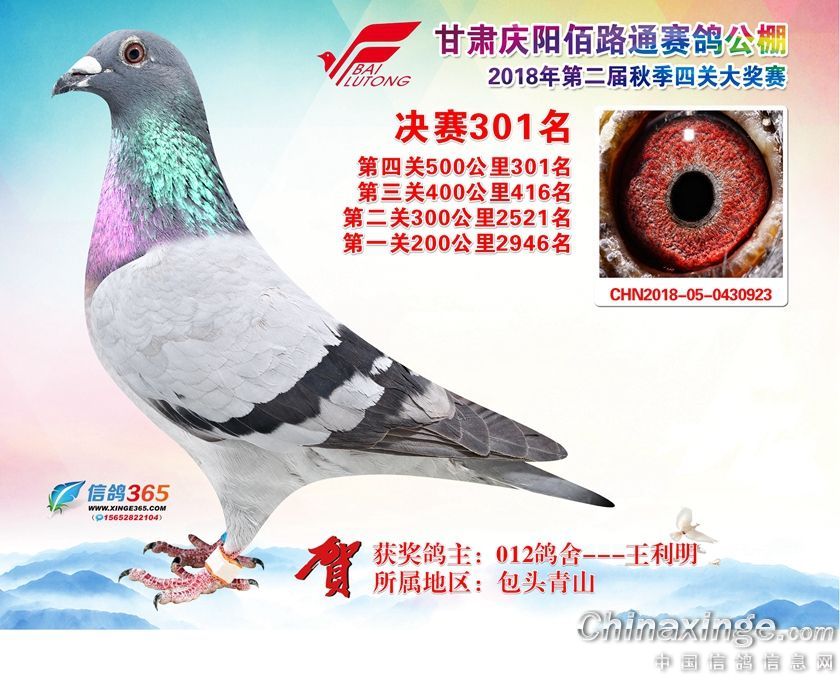 甘肃庆阳佰路通赛鸽公棚2018年获奖鸽301-330名
