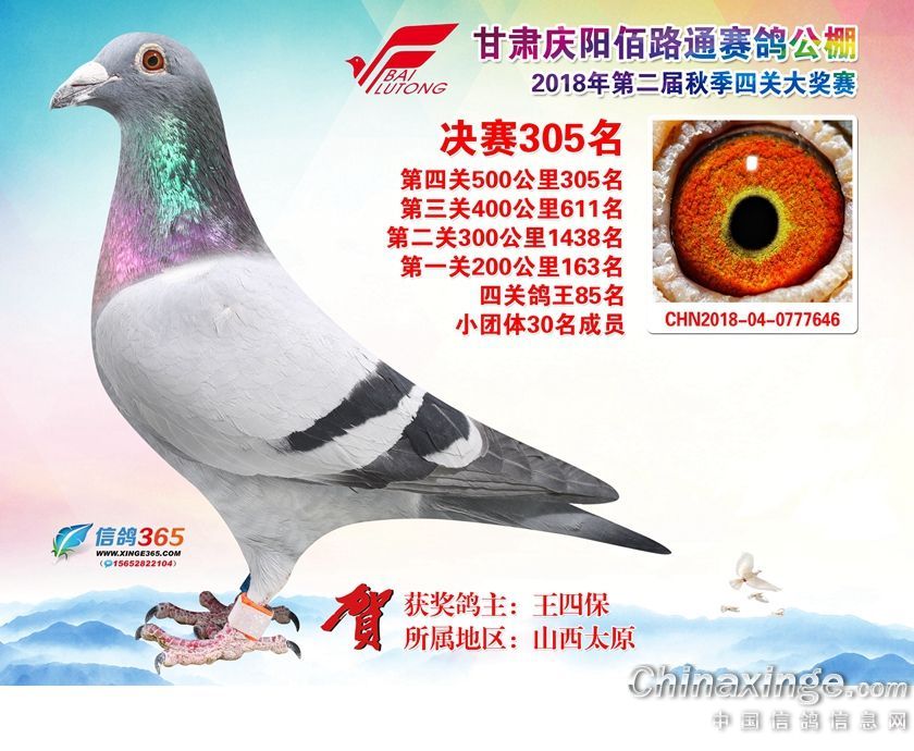 作品说明: 甘肃庆阳佰路通赛鸽公棚2018年获奖鸽301-330名