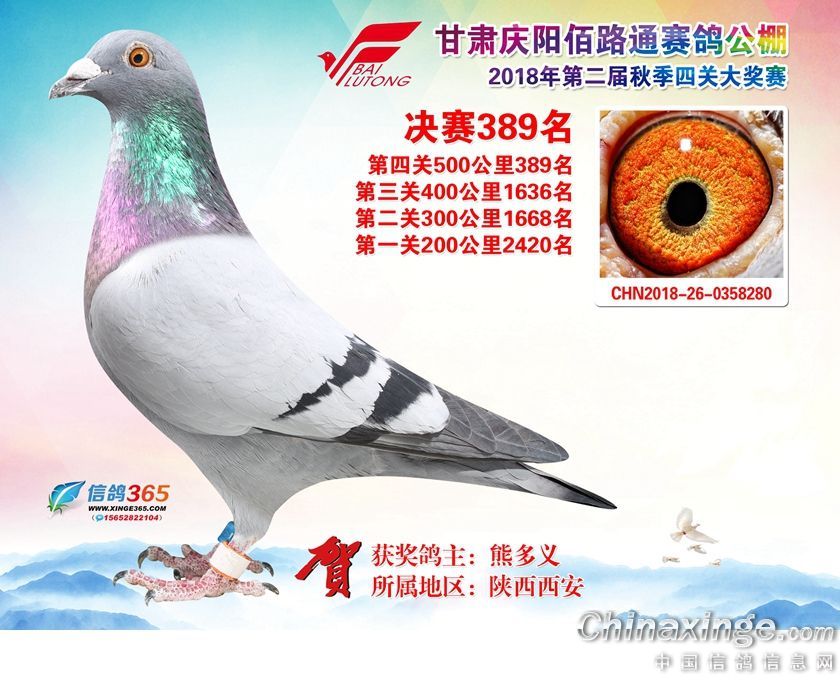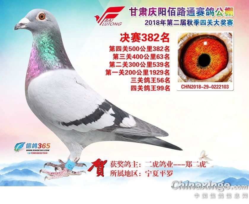 作品说明: 甘肃庆阳佰路通赛鸽公棚2018年获奖鸽361-390名