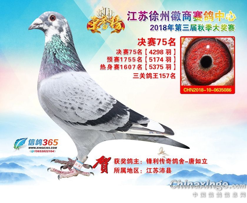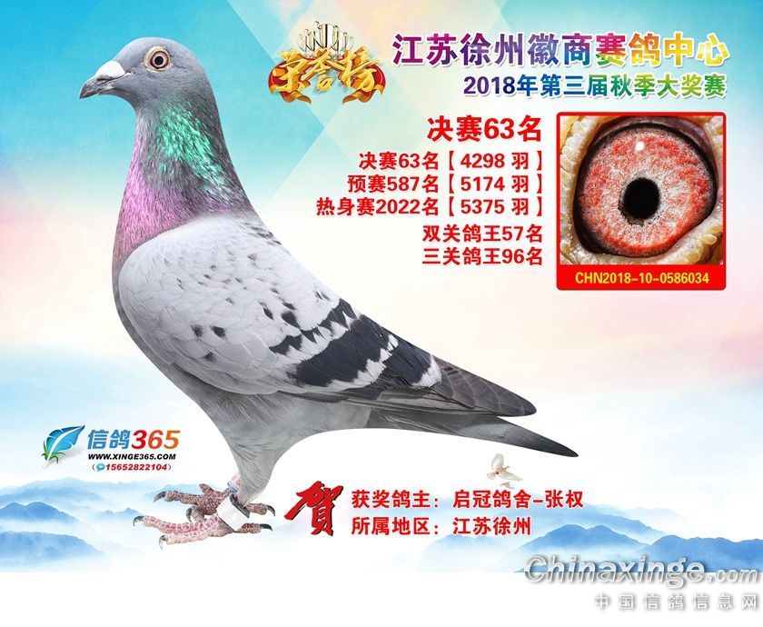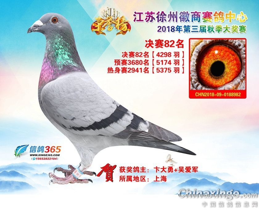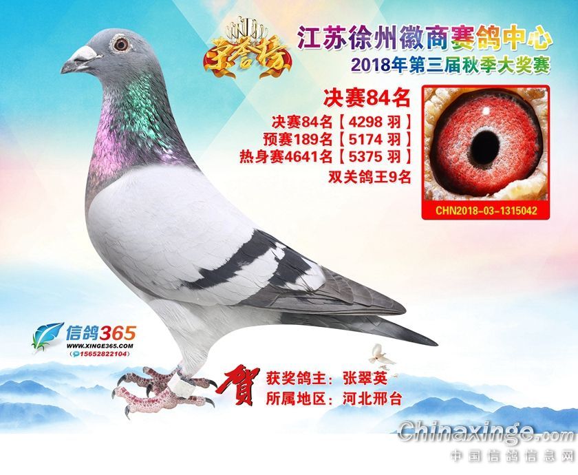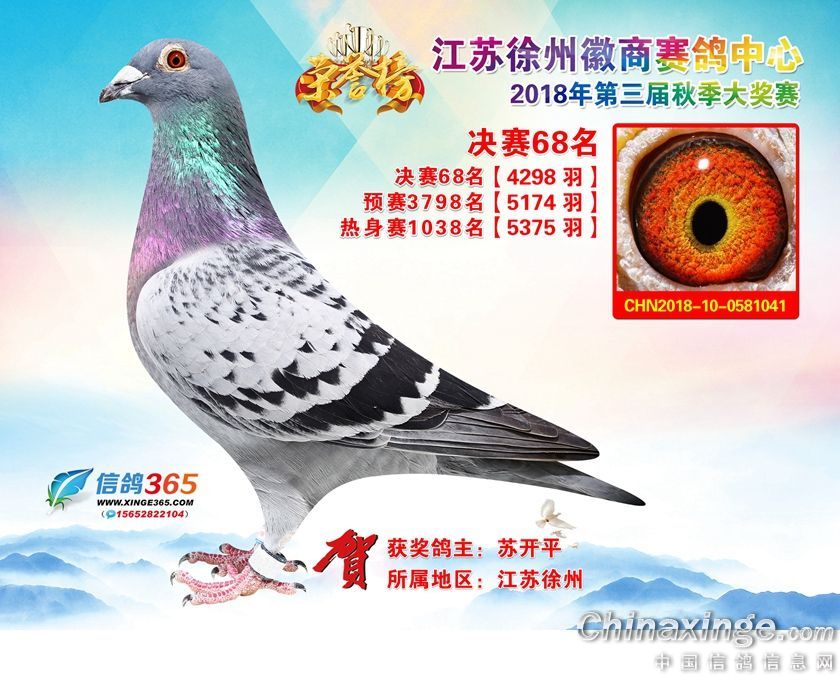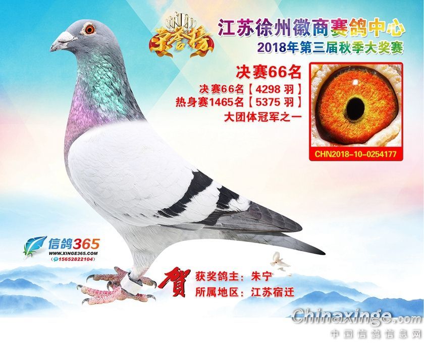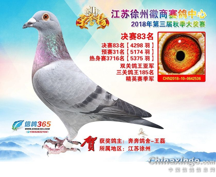 作品说明: 江苏徐州徽商赛鸽中心2018年获奖鸽61-90名