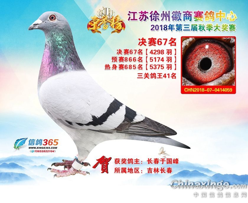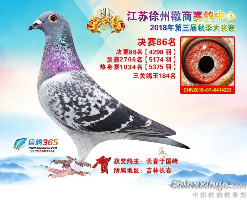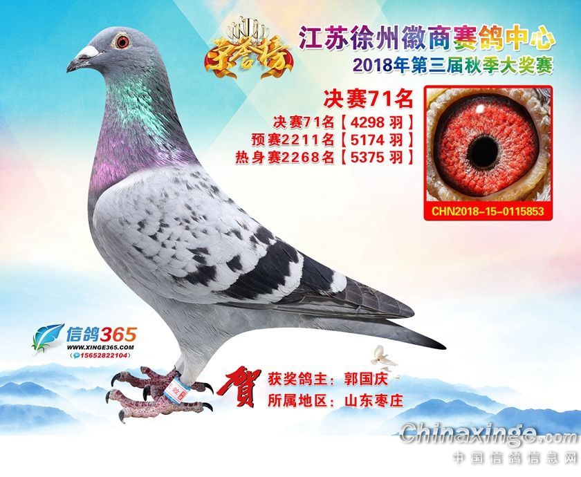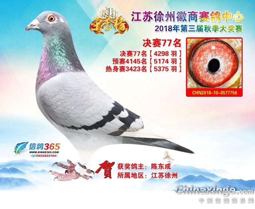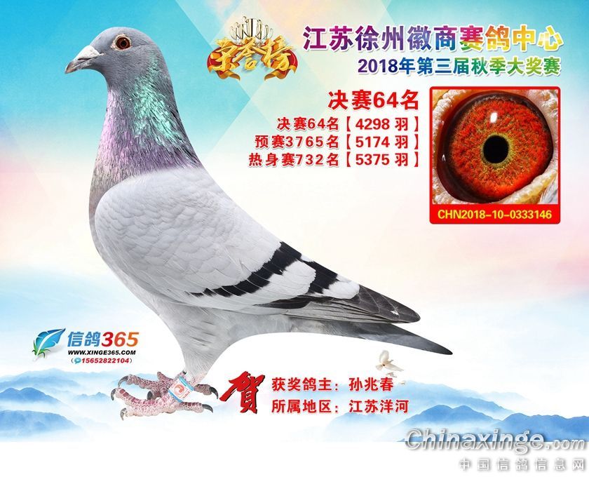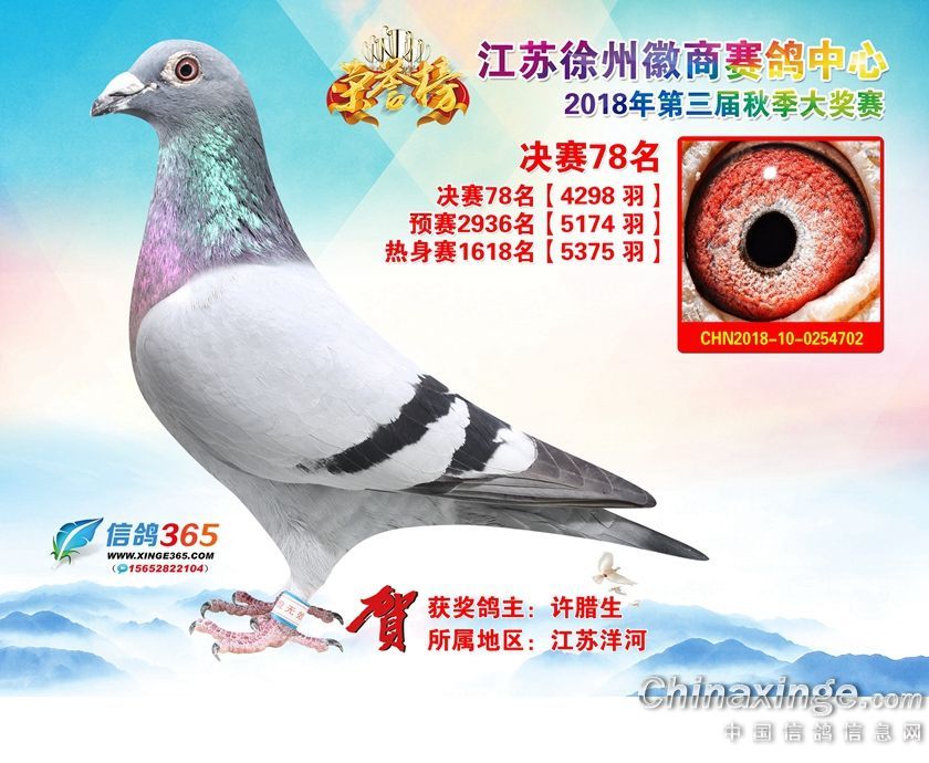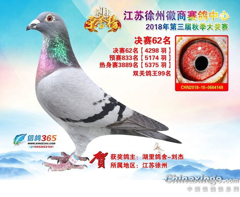 作品说明: 江苏徐州徽商赛鸽中心2018年获奖鸽61-90名