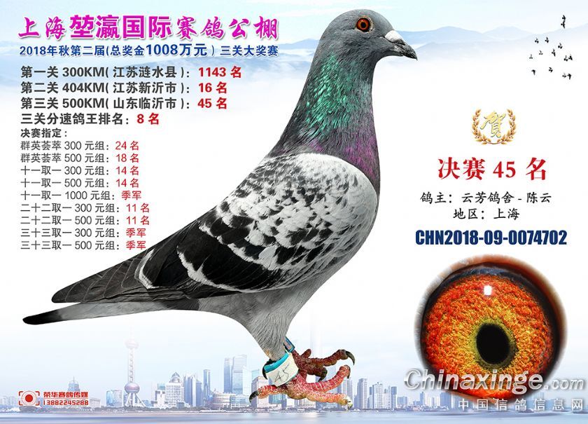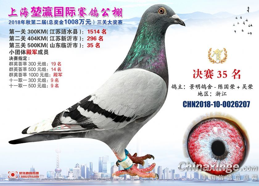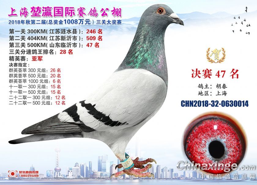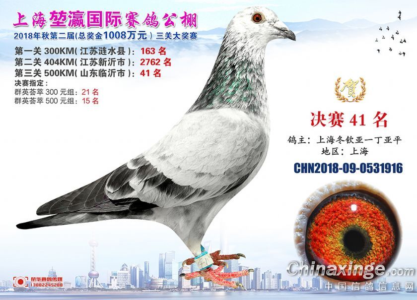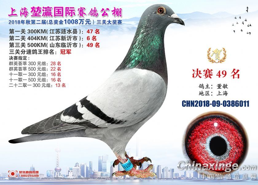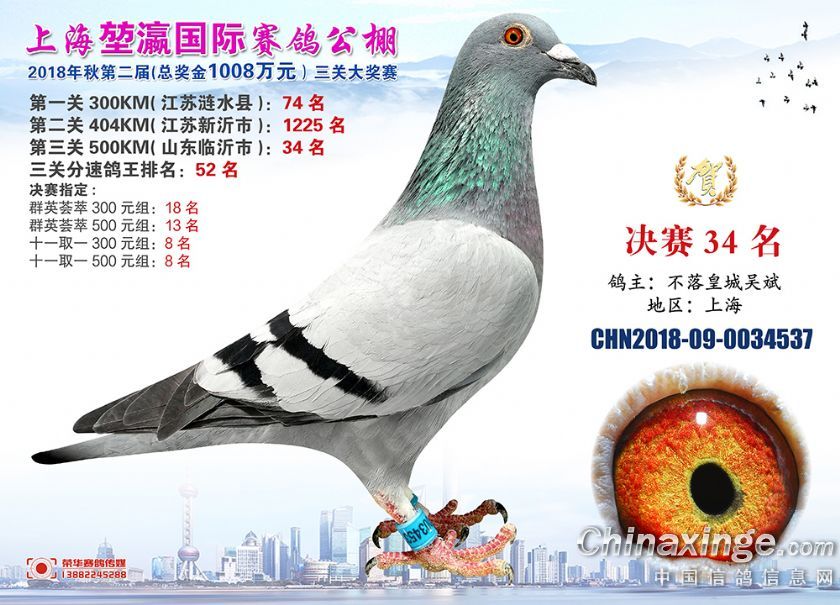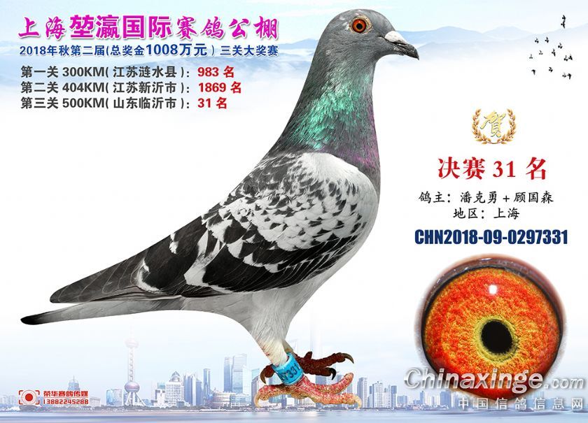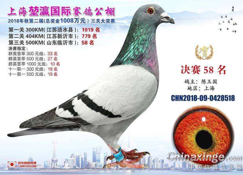 2018年上海堃瀛国际赛鸽俱乐部公棚获奖鸽照片31-60名