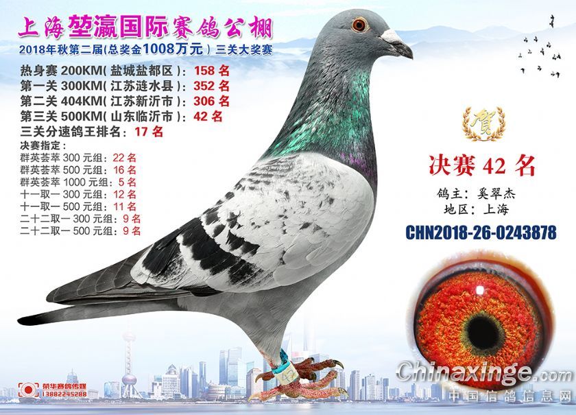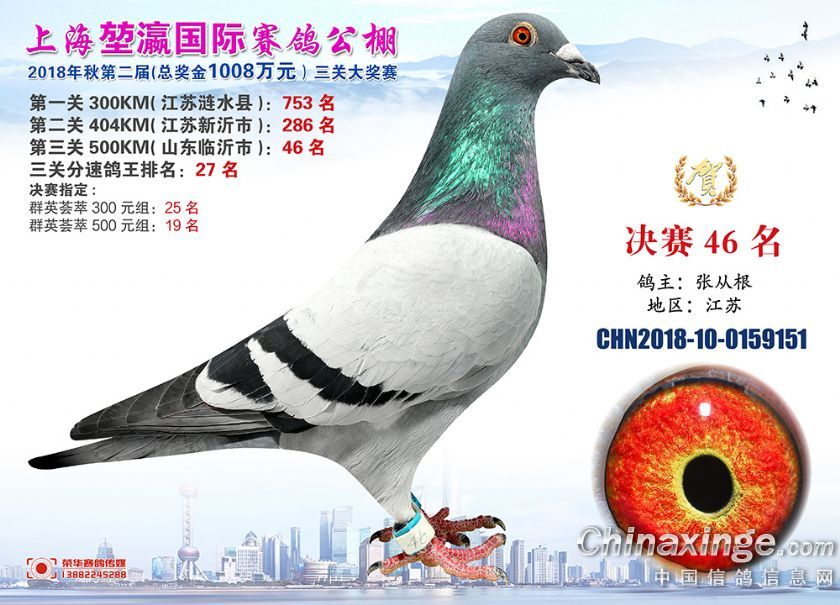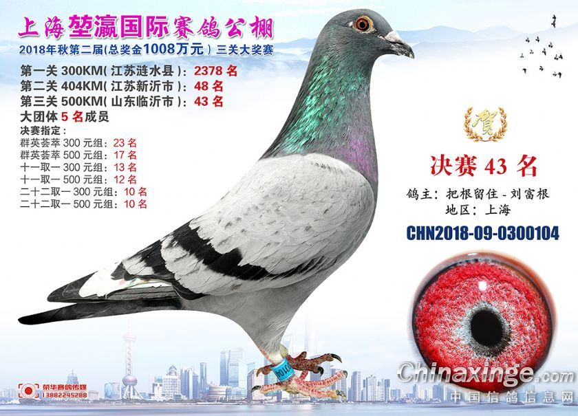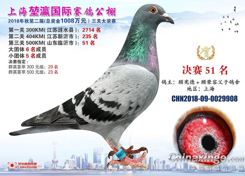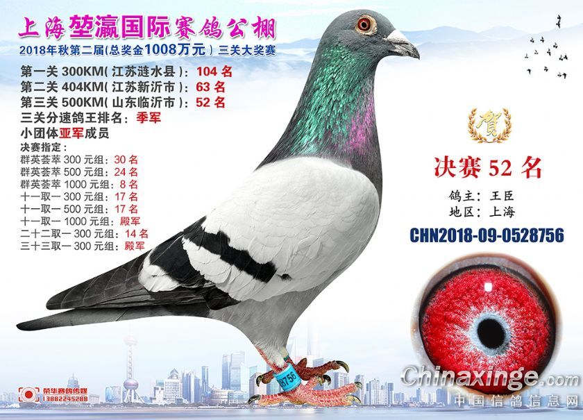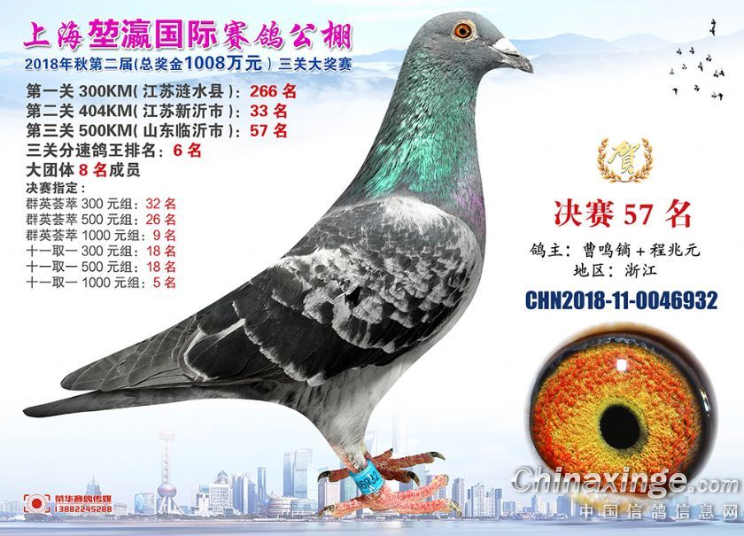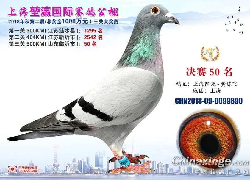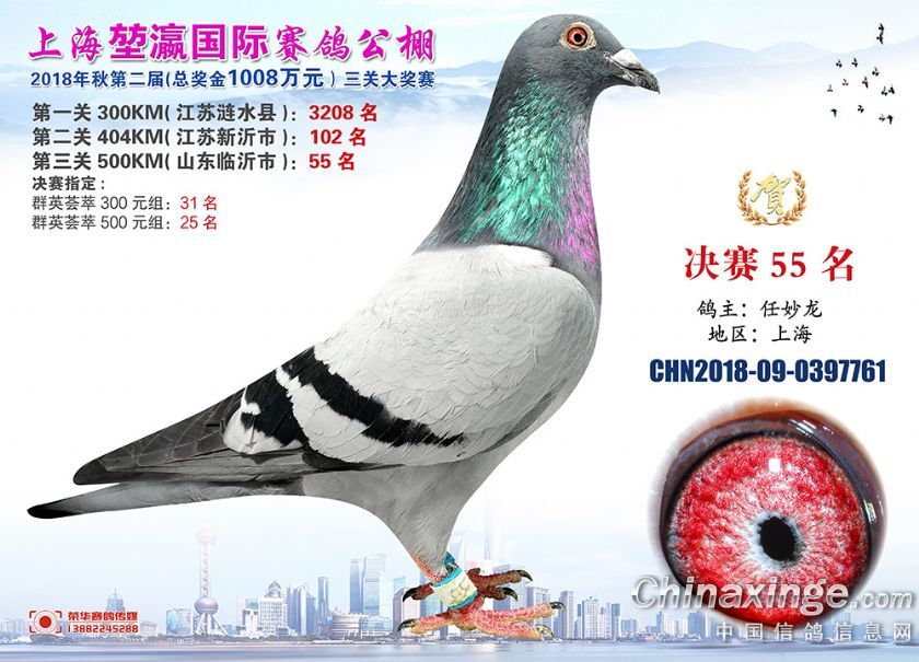 2018年上海堃瀛国际赛鸽俱乐部公棚获奖鸽照片31-60名