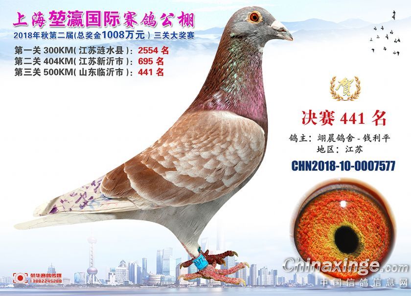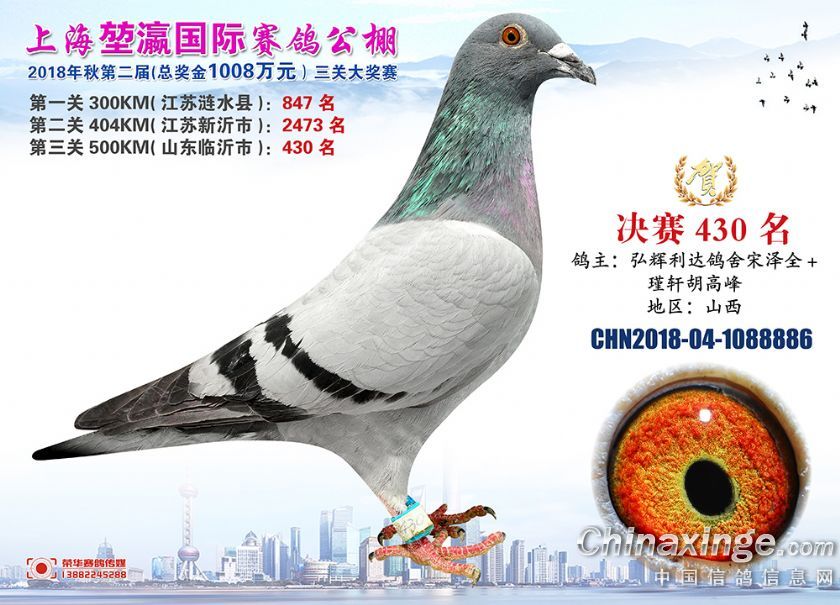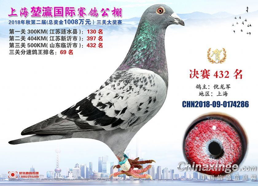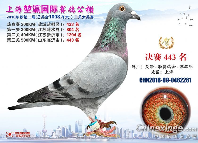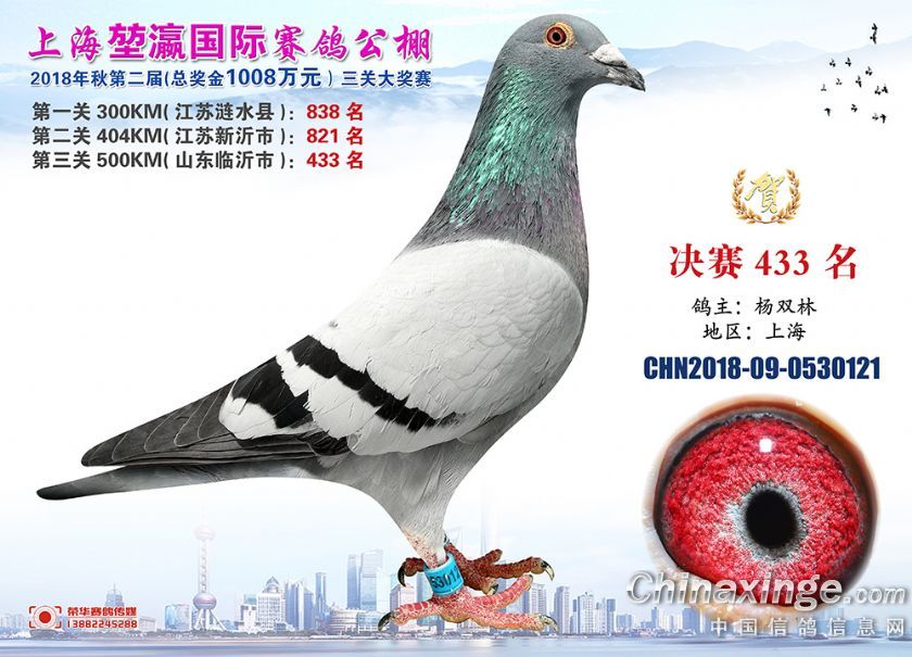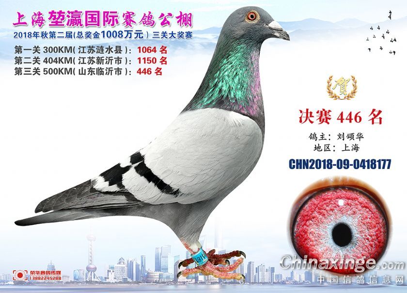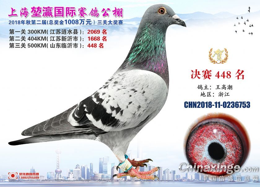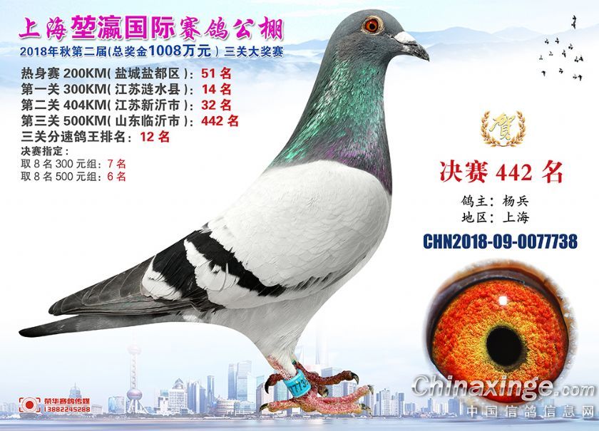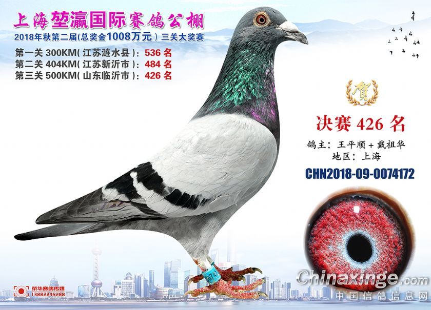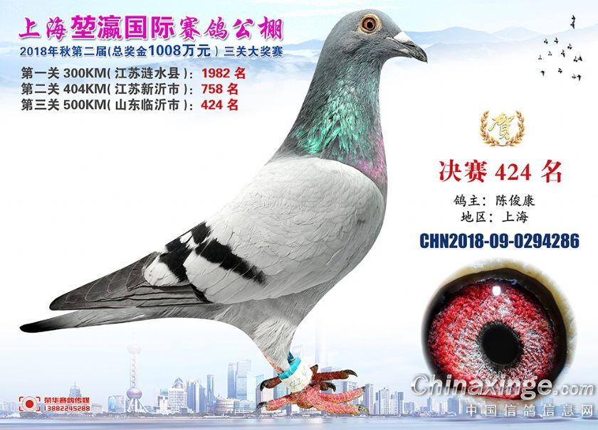 2018年上海堃瀛国际赛鸽俱乐部公棚获奖鸽照片421名-450名