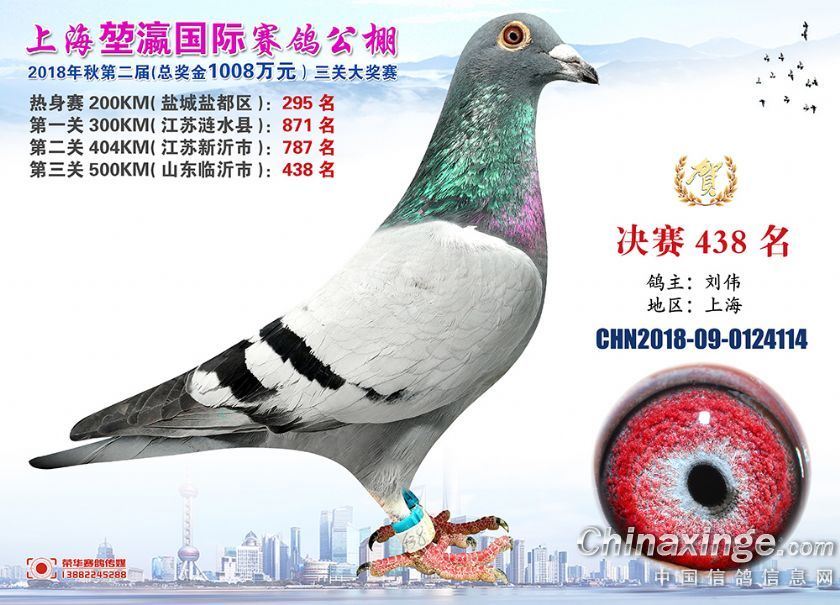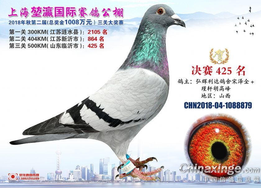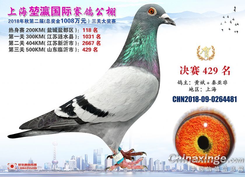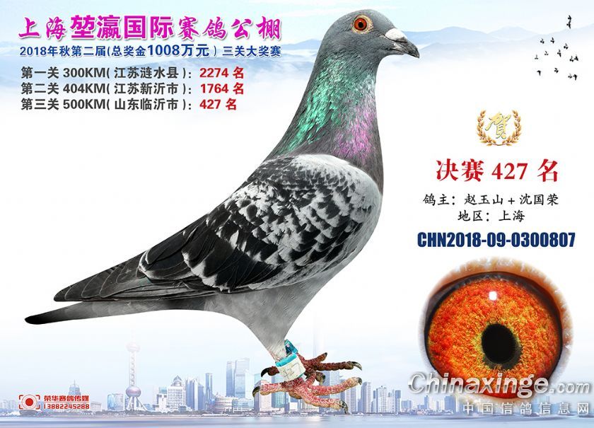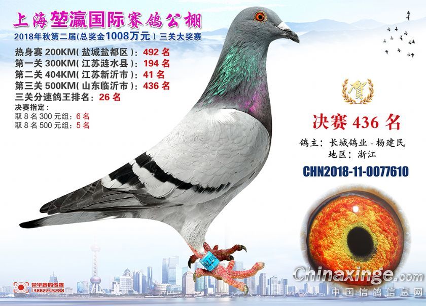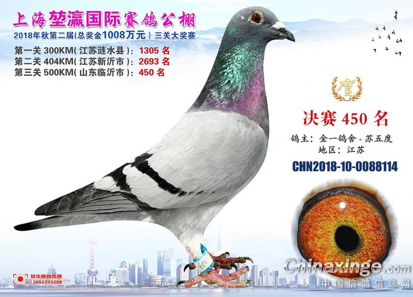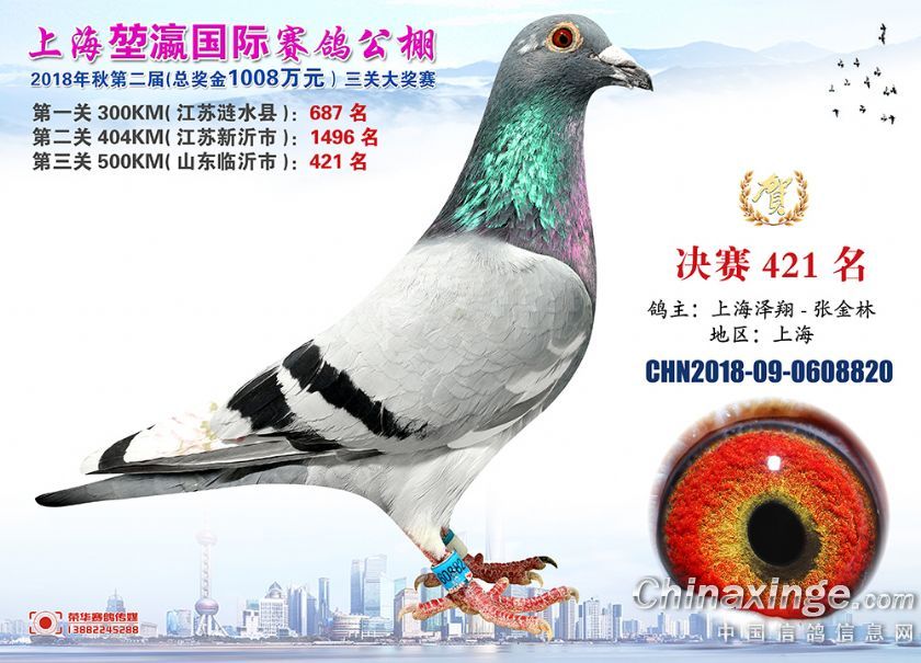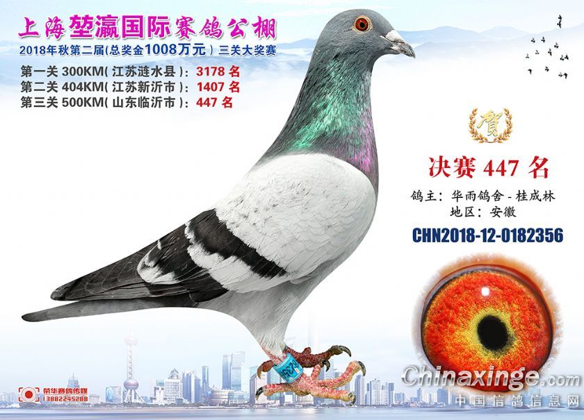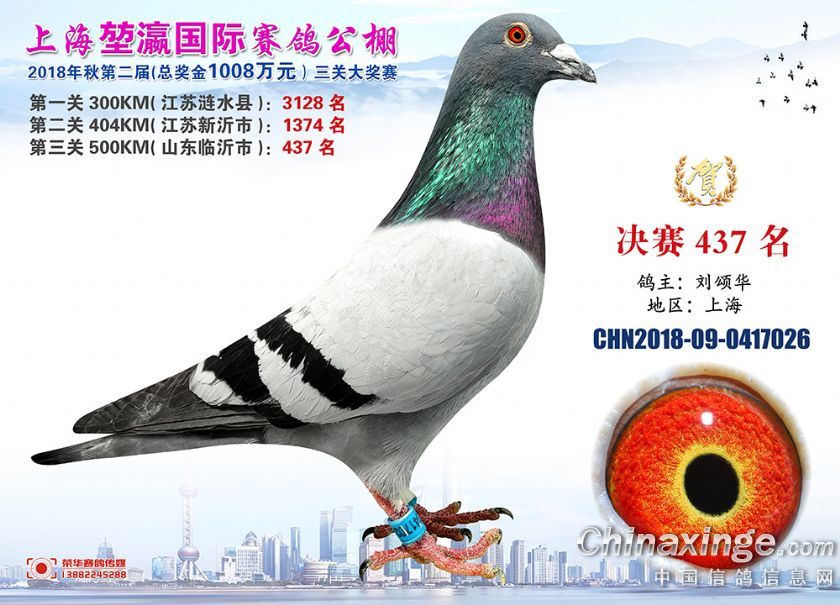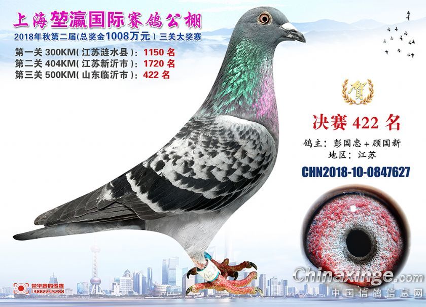 2018年上海堃瀛国际赛鸽俱乐部公棚获奖鸽照片421名-450名