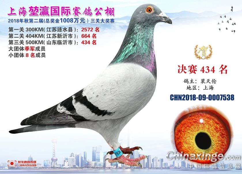 作品说明: 2018年上海堃瀛国际赛鸽俱乐部公棚获奖鸽照片