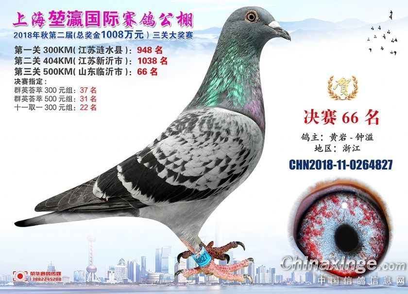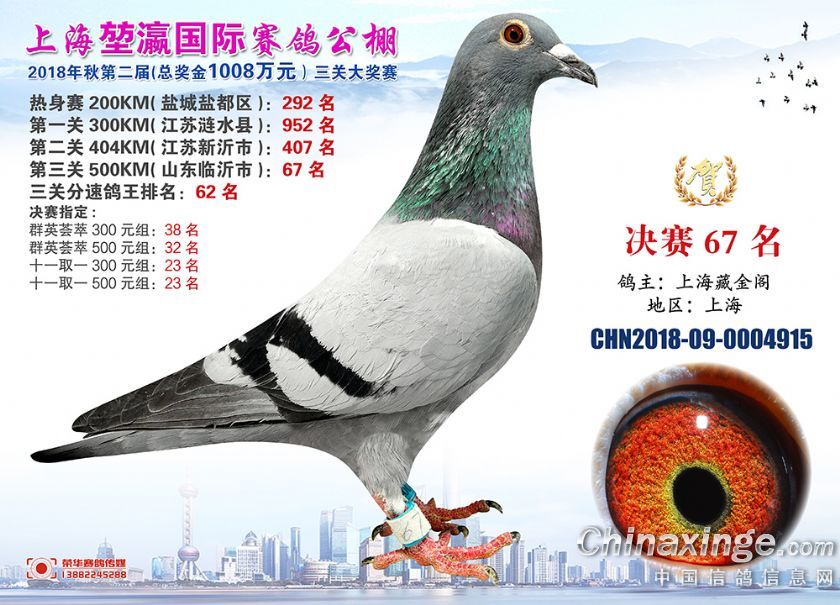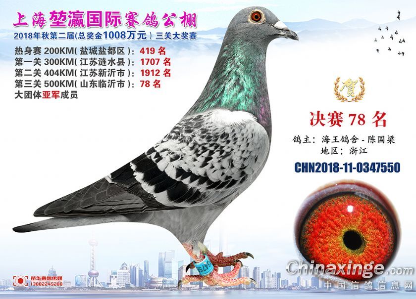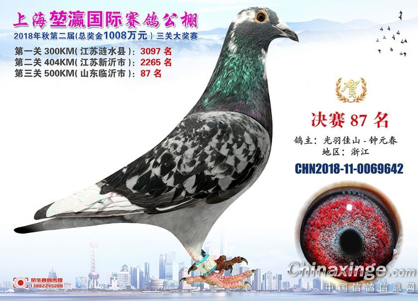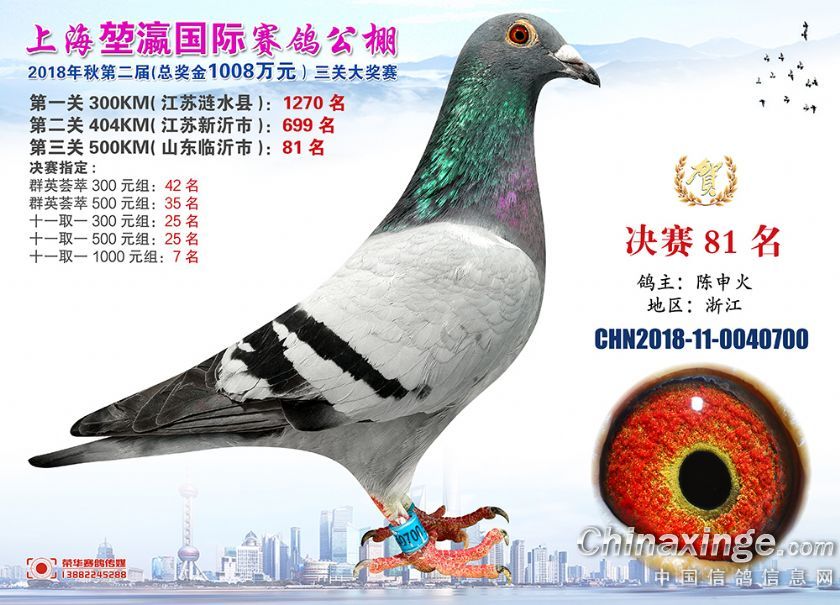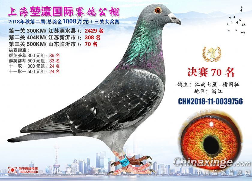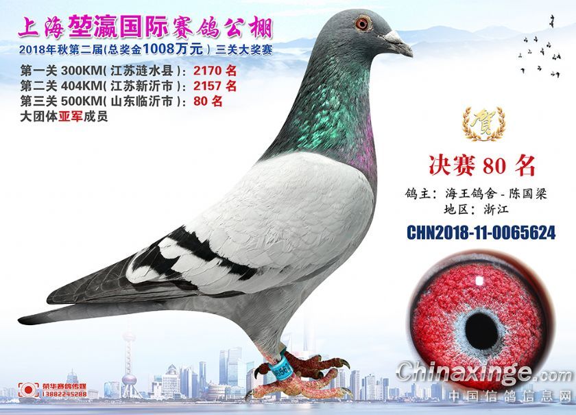 2018年上海堃瀛国际赛鸽俱乐部公棚获奖鸽照片61-90名