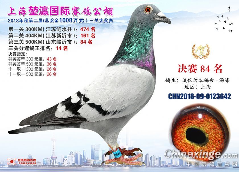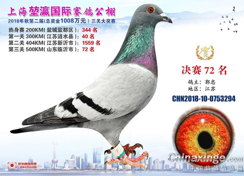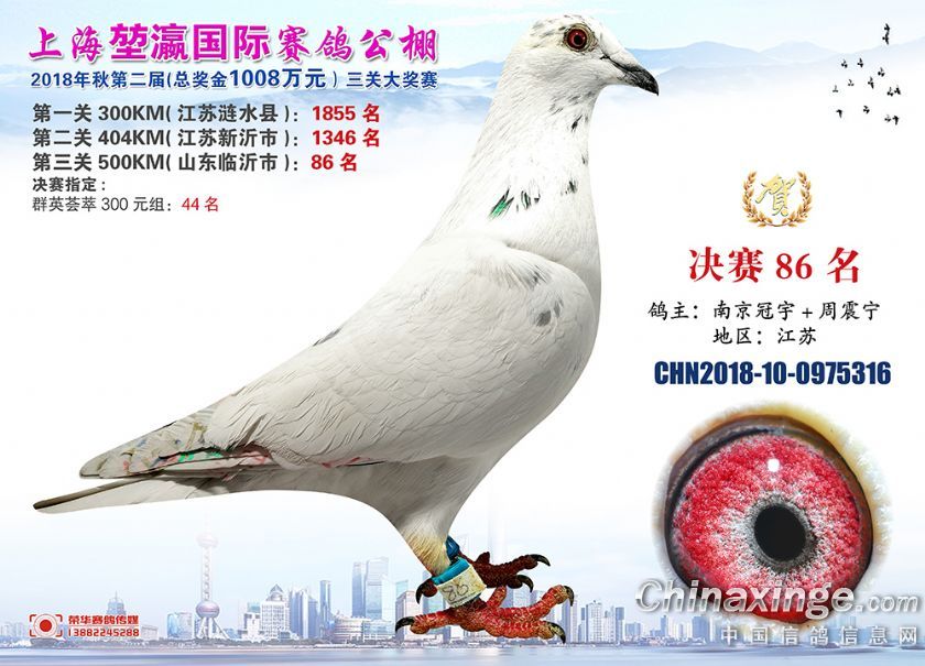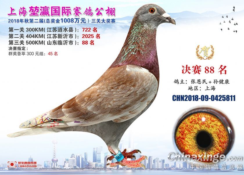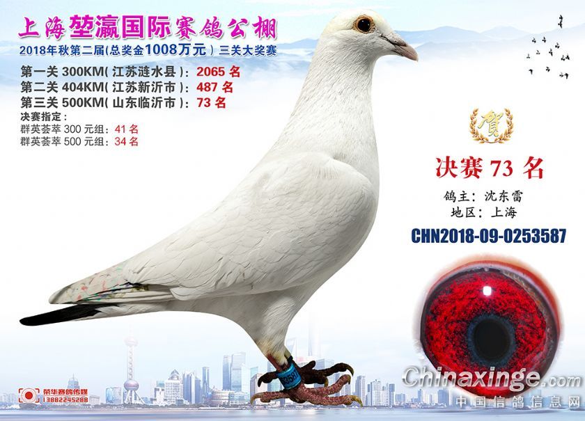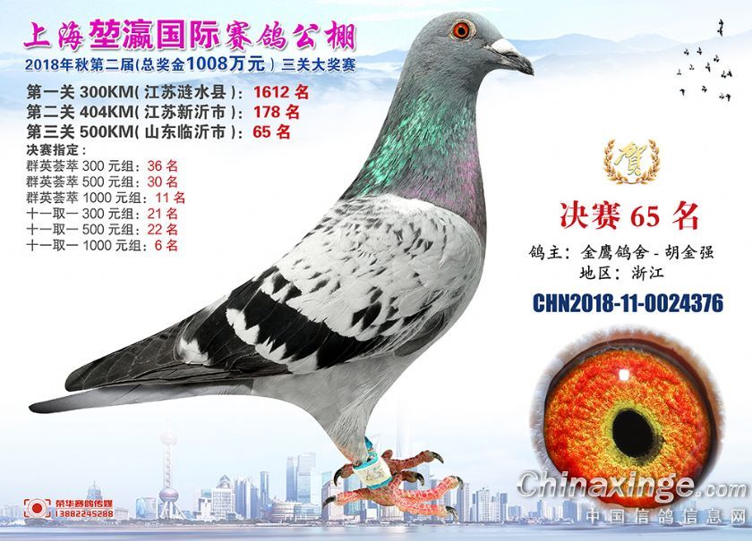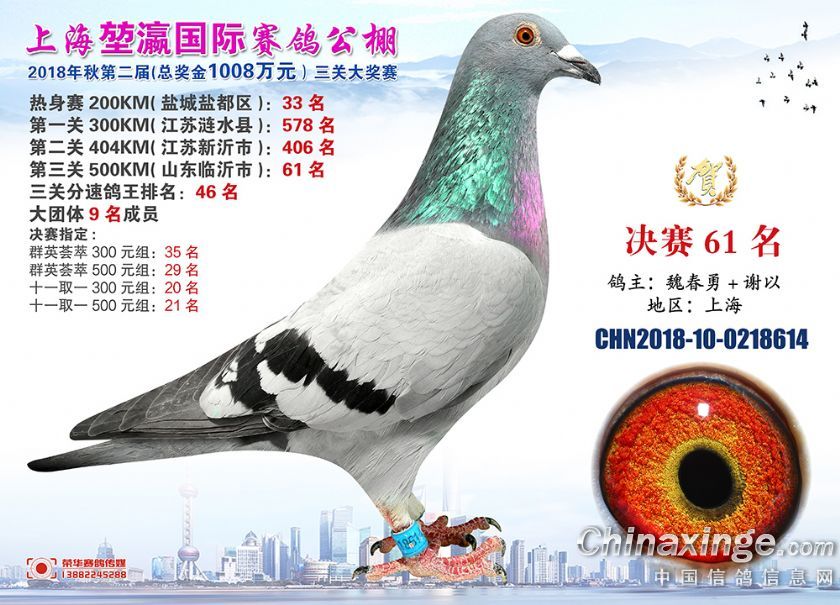 2018年上海堃瀛国际赛鸽俱乐部公棚获奖鸽照片61-90名