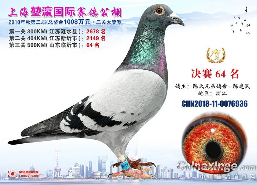 作品说明: 2018年上海堃瀛国际赛鸽俱乐部公棚获奖鸽照片61-90名