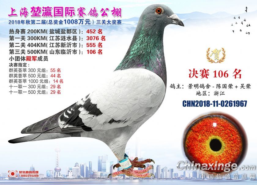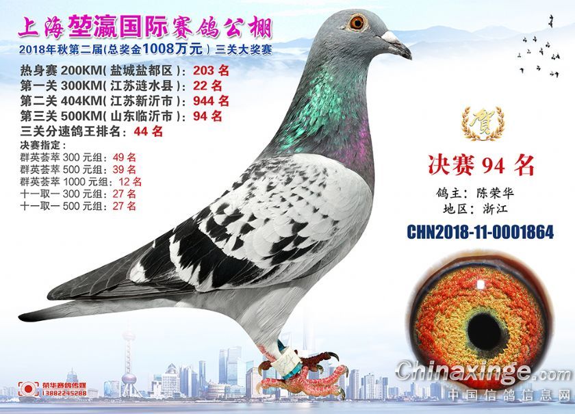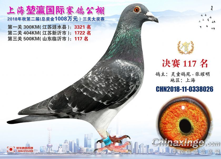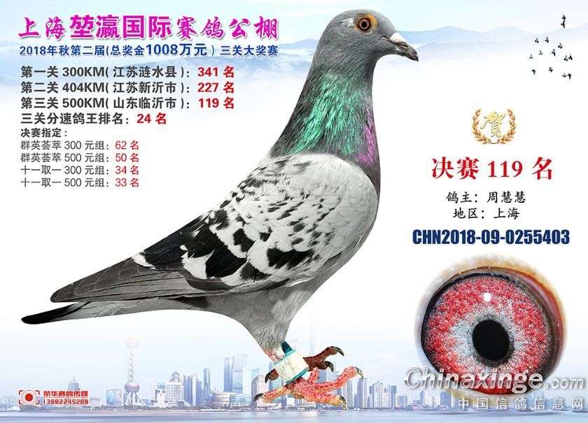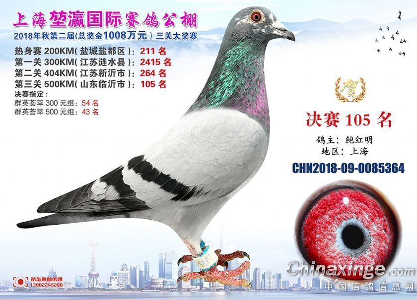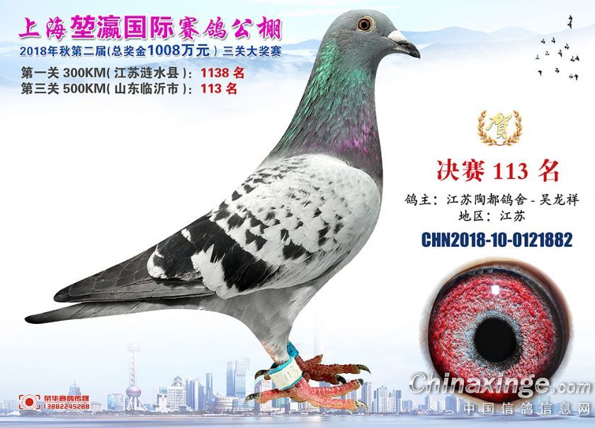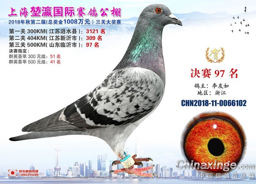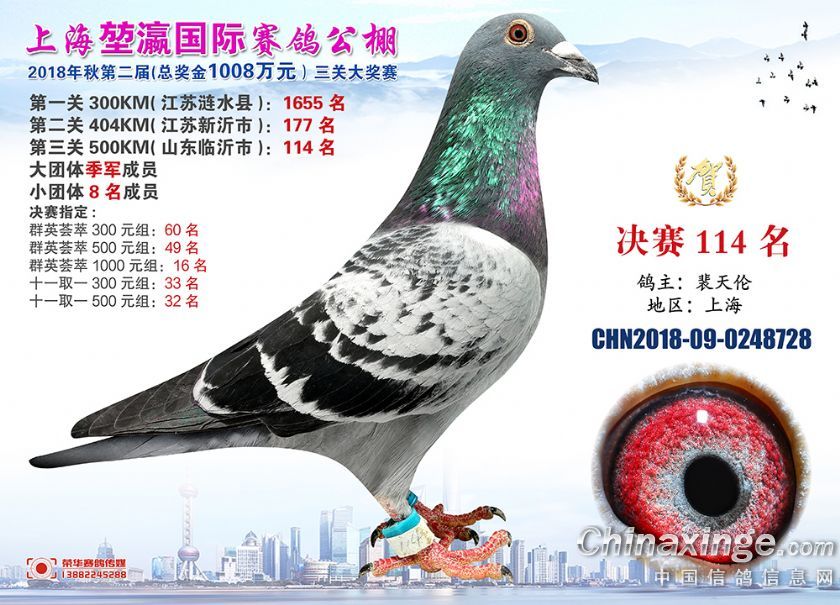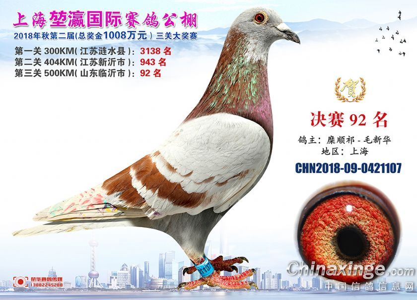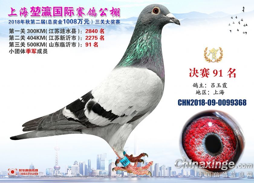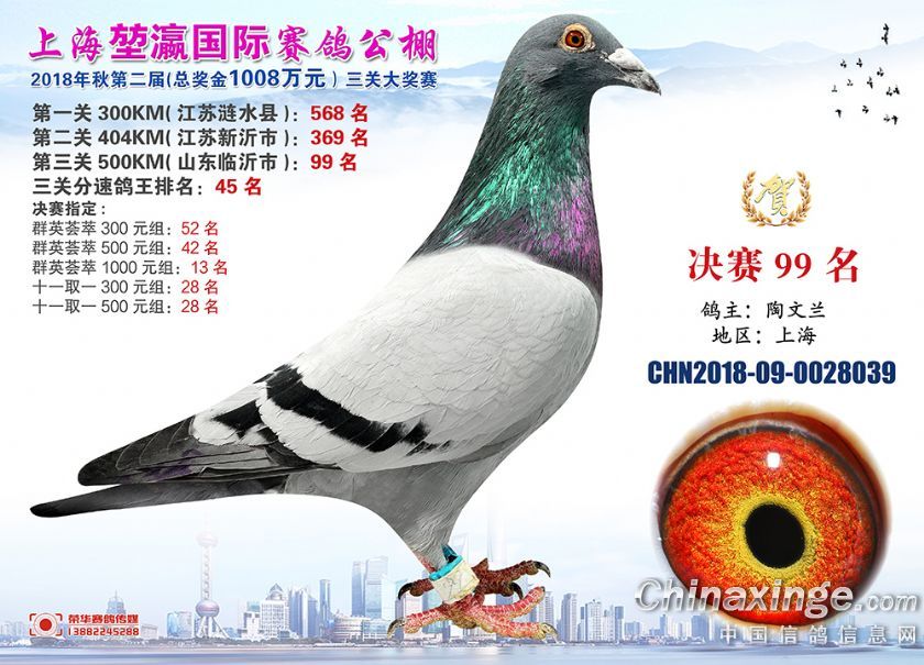 2018年上海堃瀛国际赛鸽俱乐部公棚获奖鸽照片91-120名
