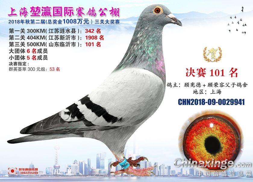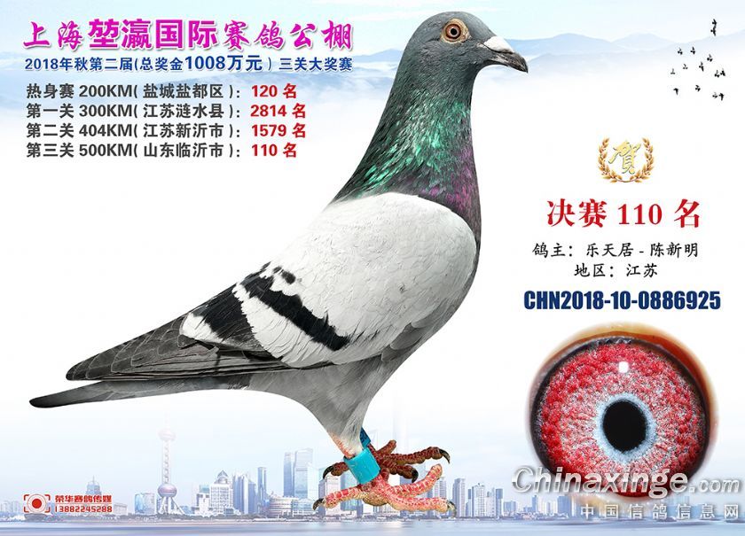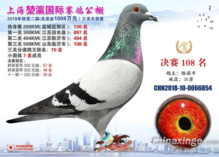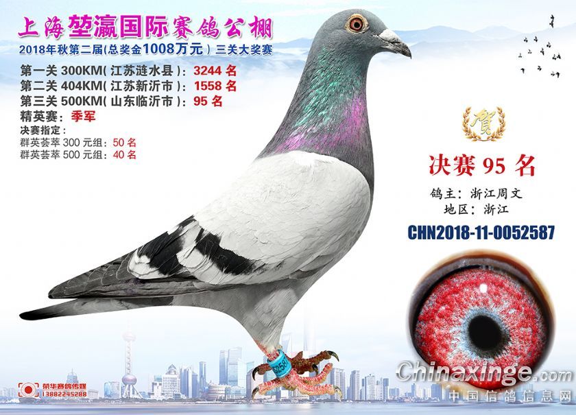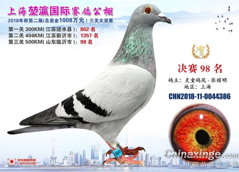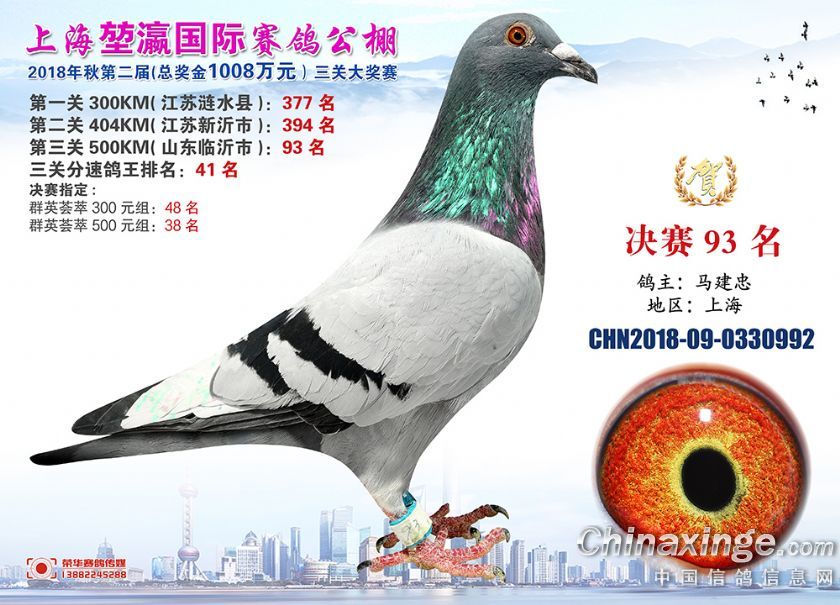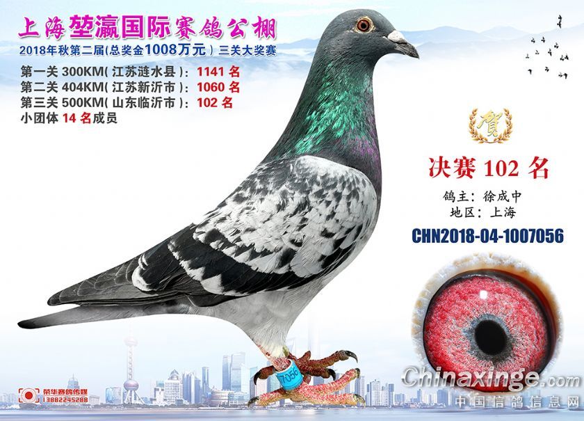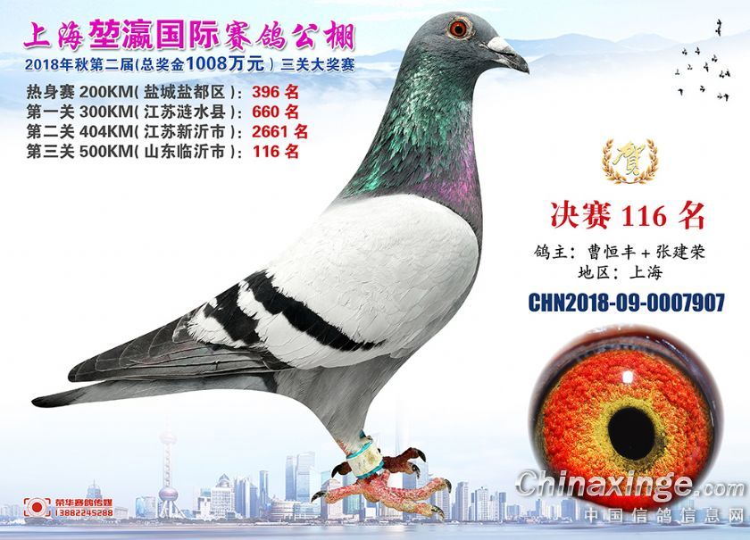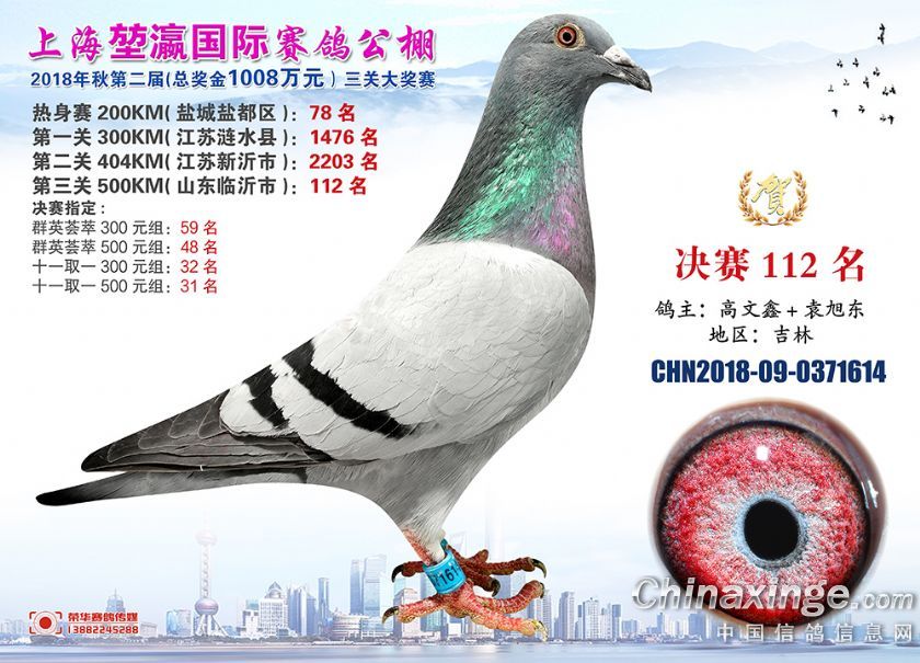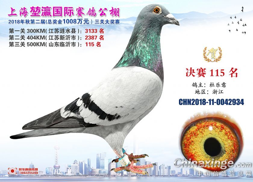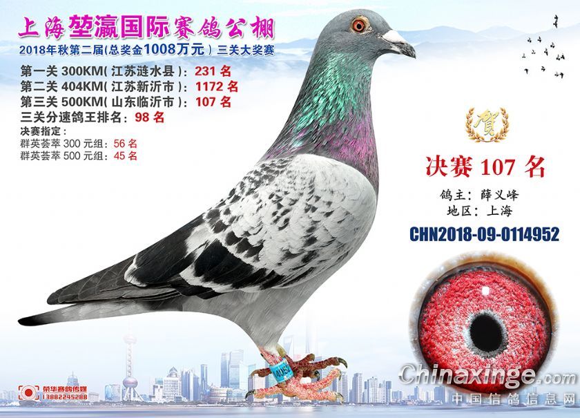 2018年上海堃瀛国际赛鸽俱乐部公棚获奖鸽照片91-120名