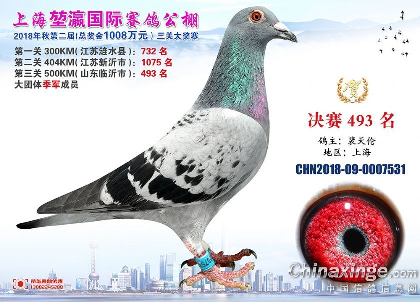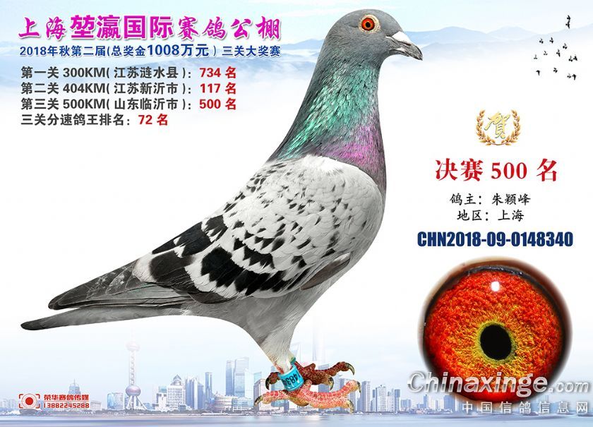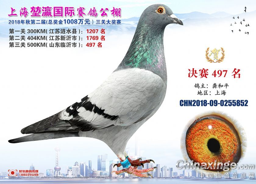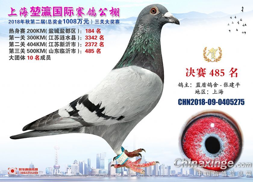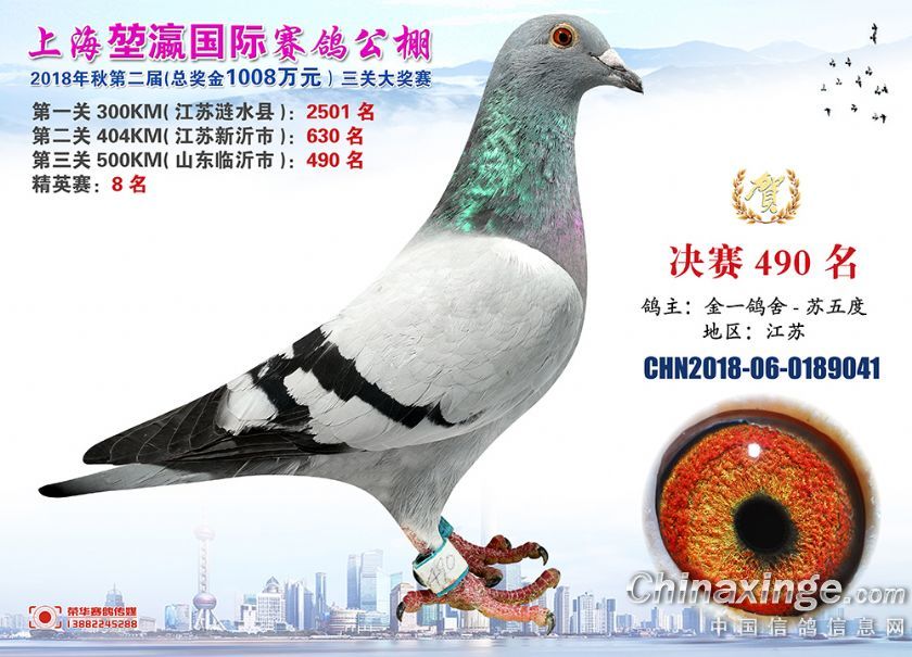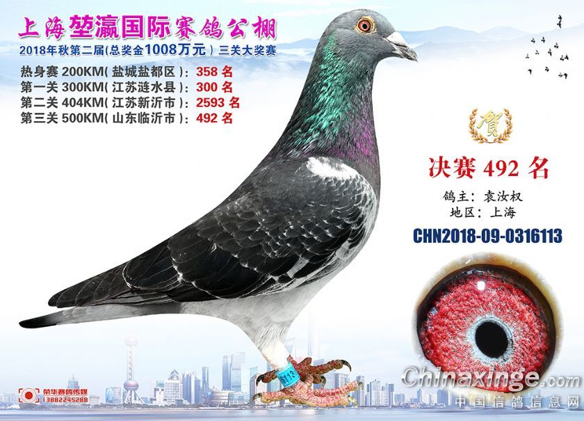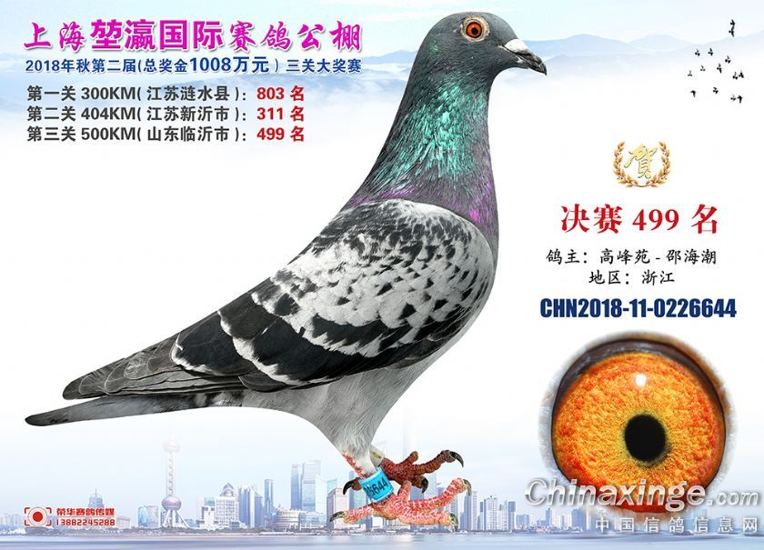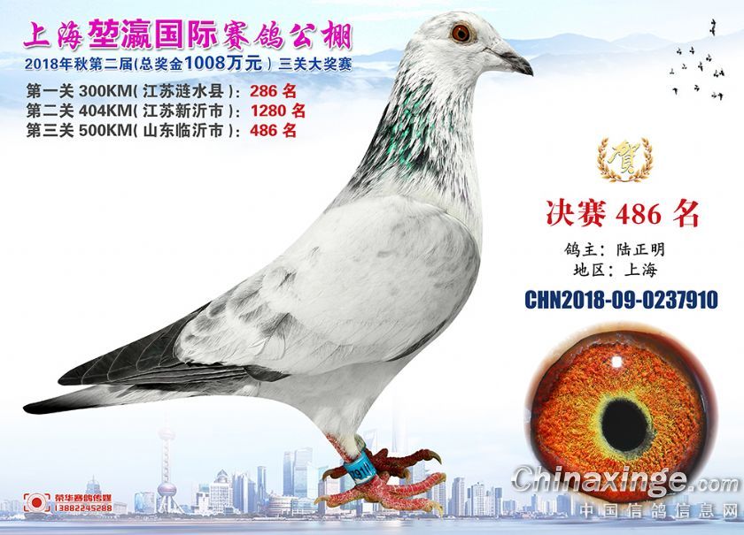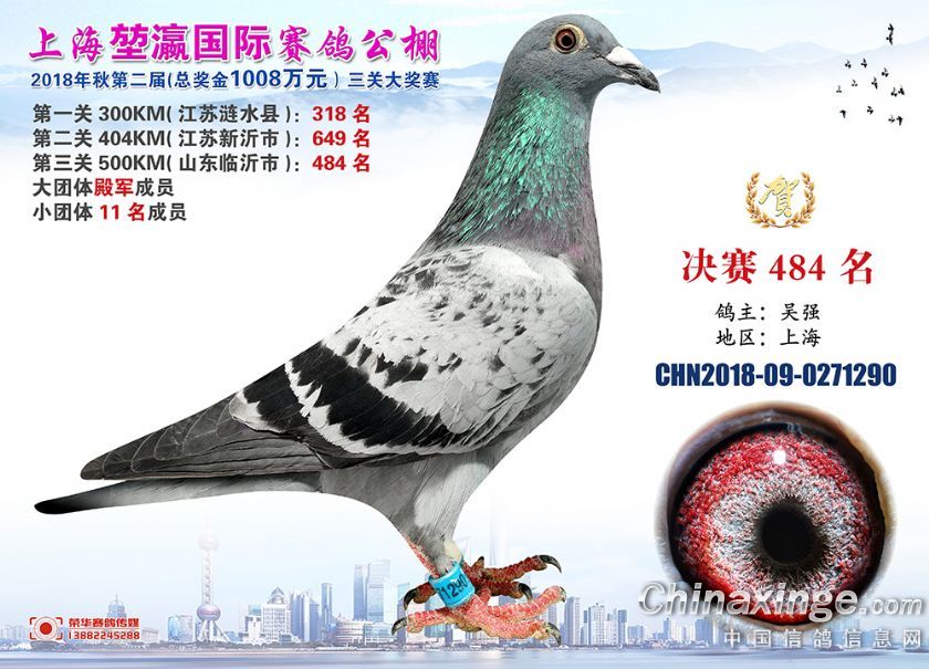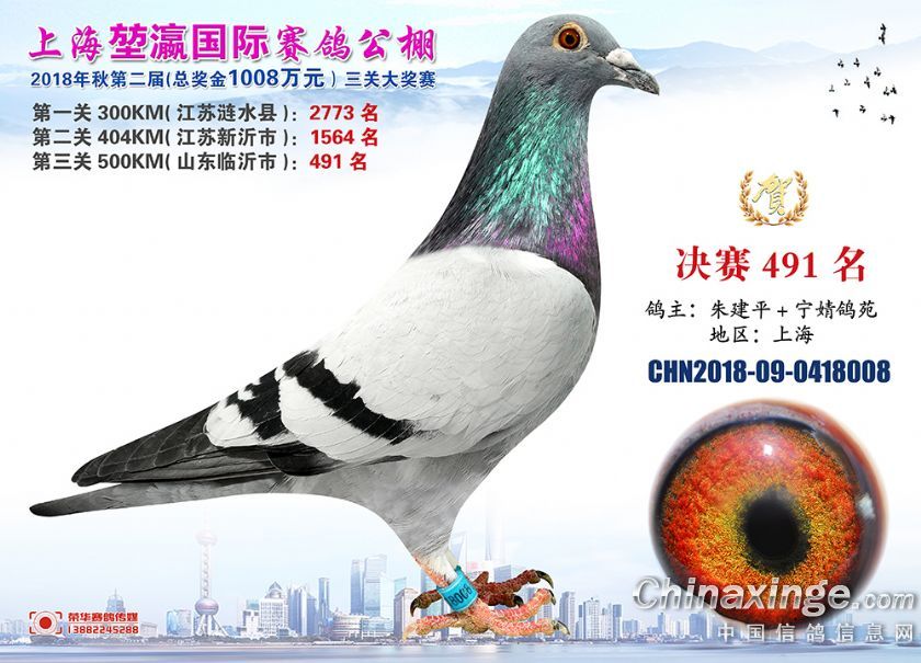 2018年上海堃瀛国际赛鸽俱乐部公棚获奖鸽照片481-510名