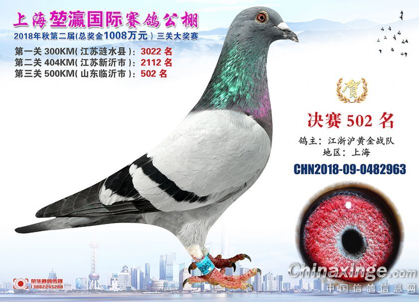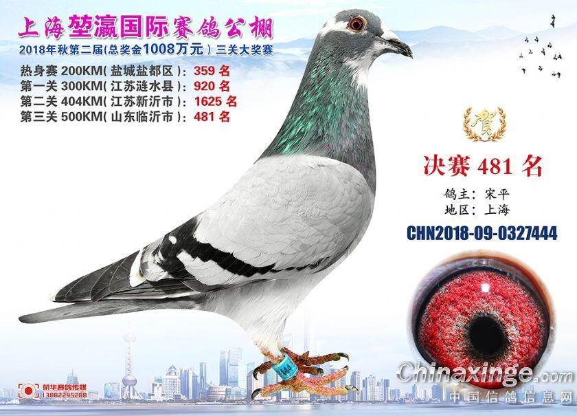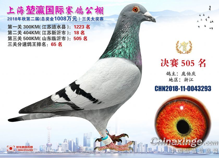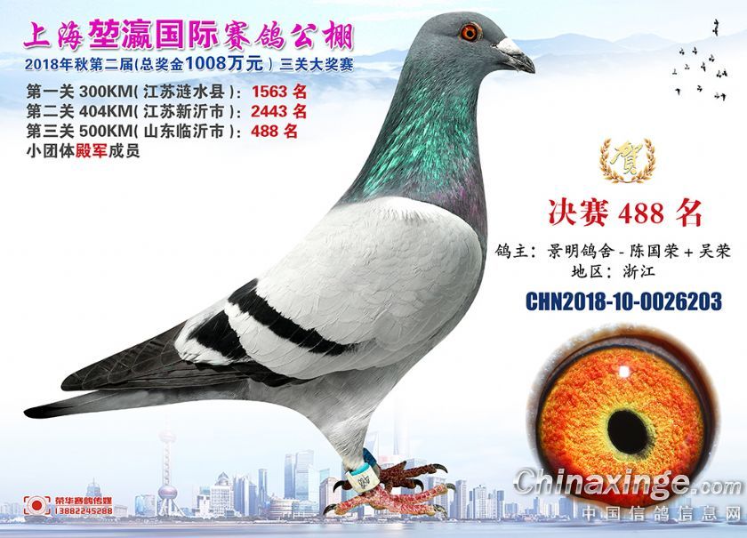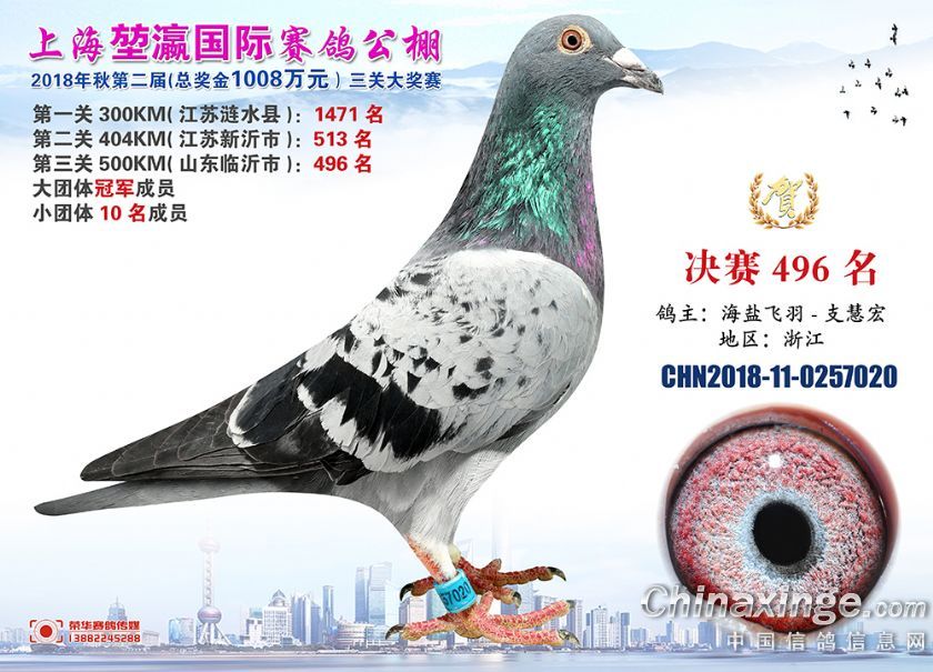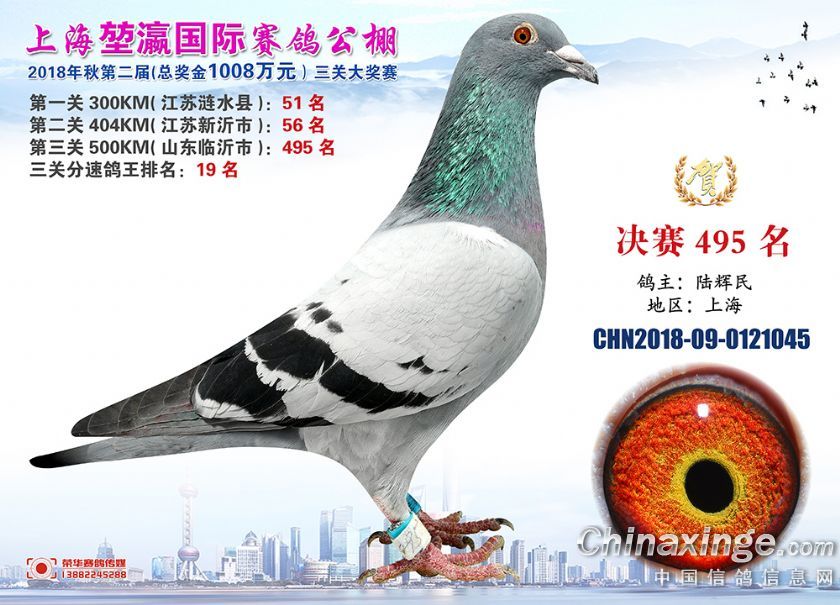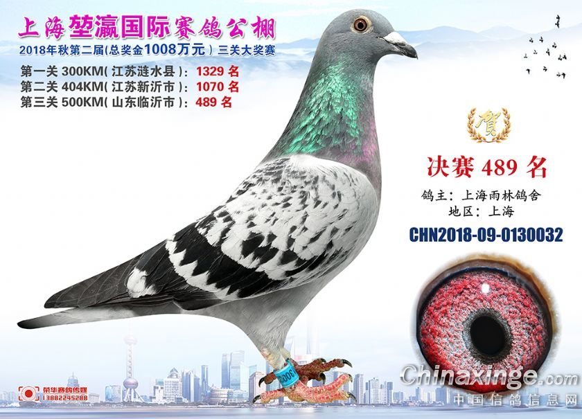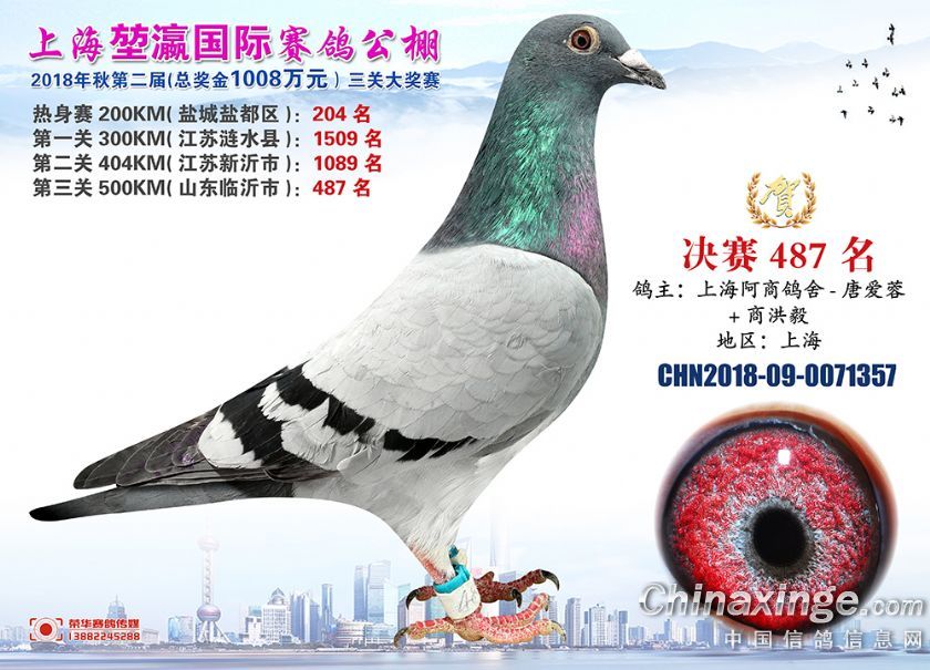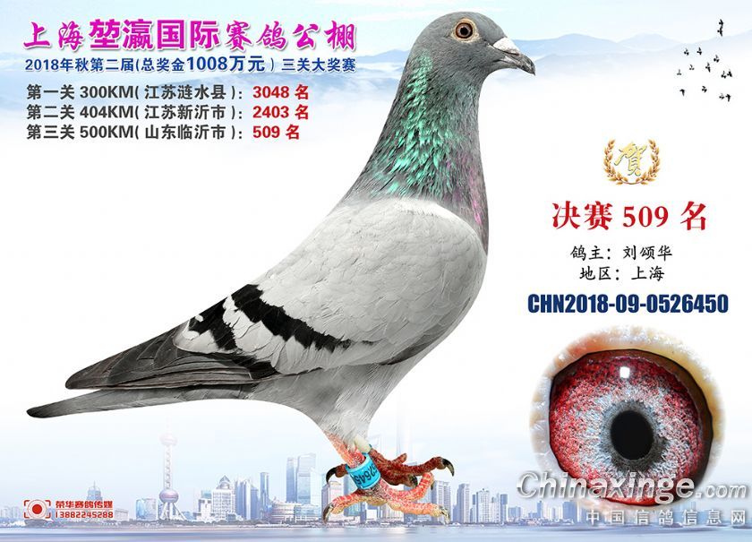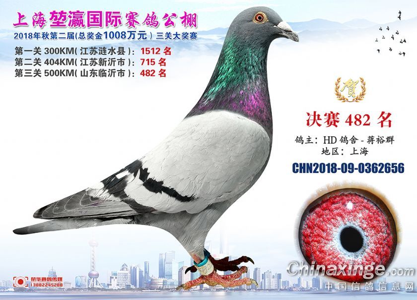 2018年上海堃瀛国际赛鸽俱乐部公棚获奖鸽照片481-510名