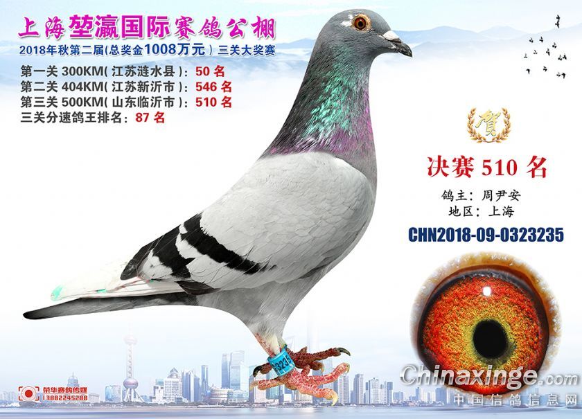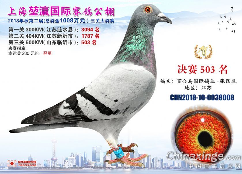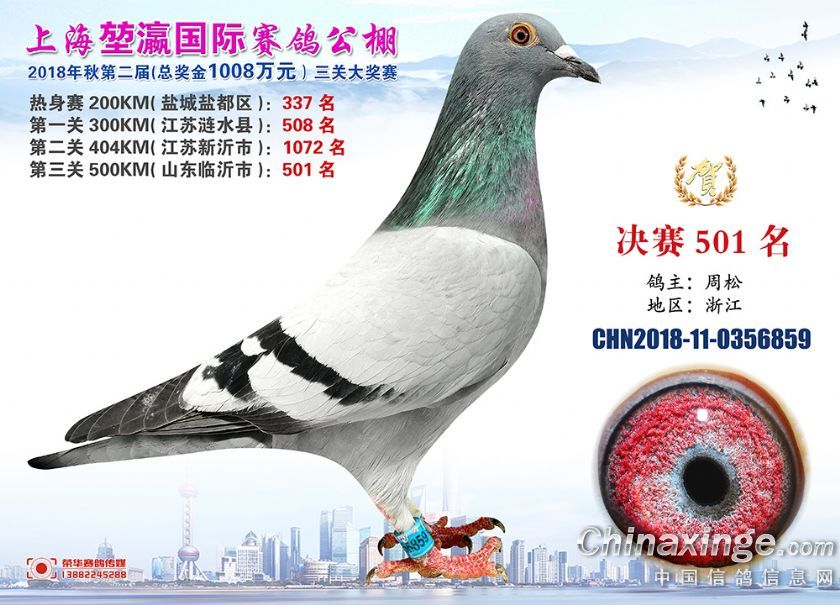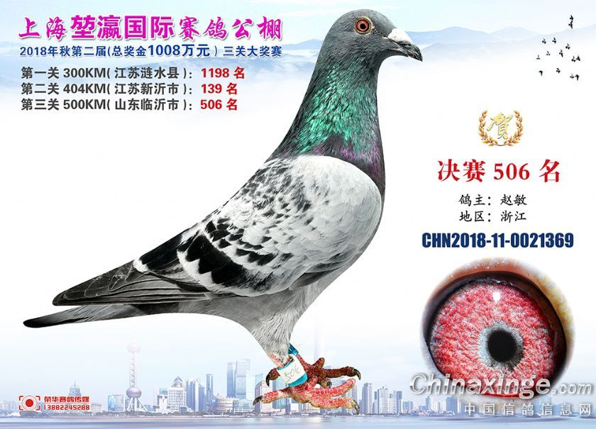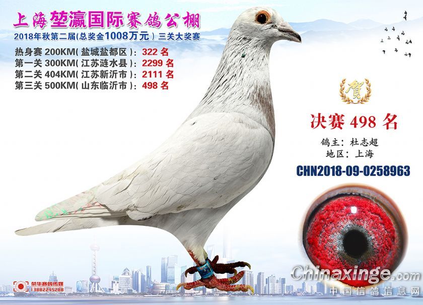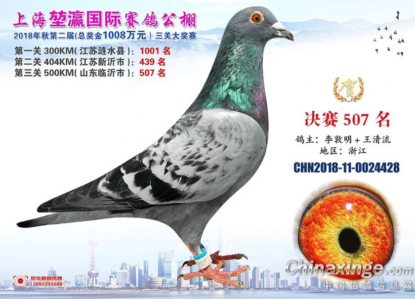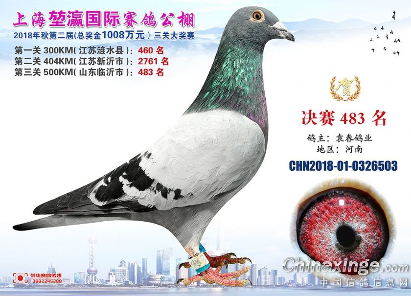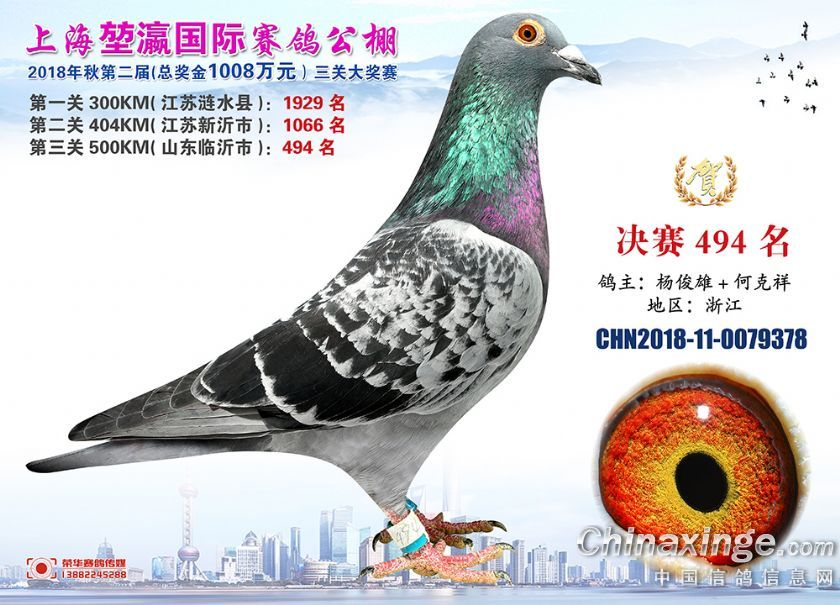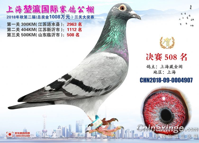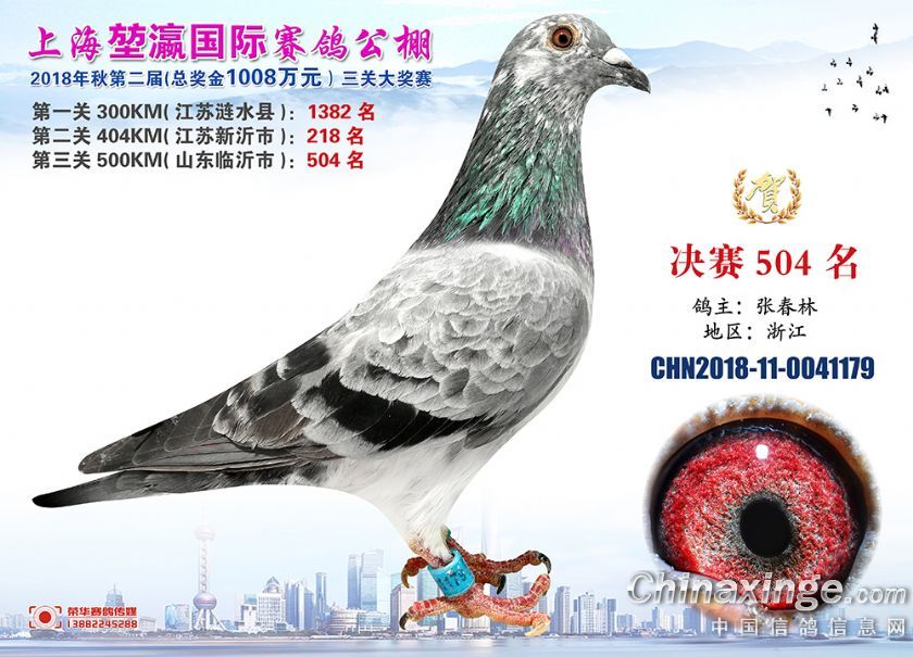 2018年上海堃瀛国际赛鸽俱乐部公棚获奖鸽照片481-510名
