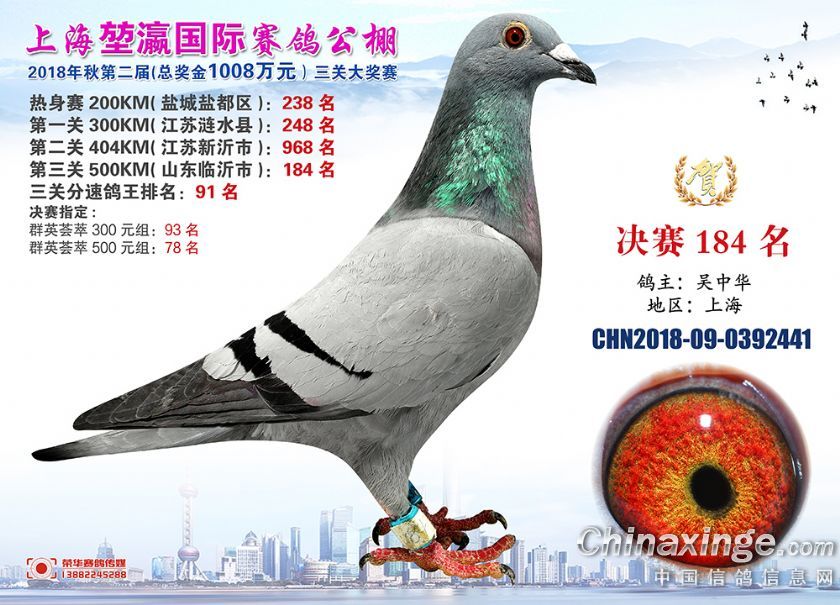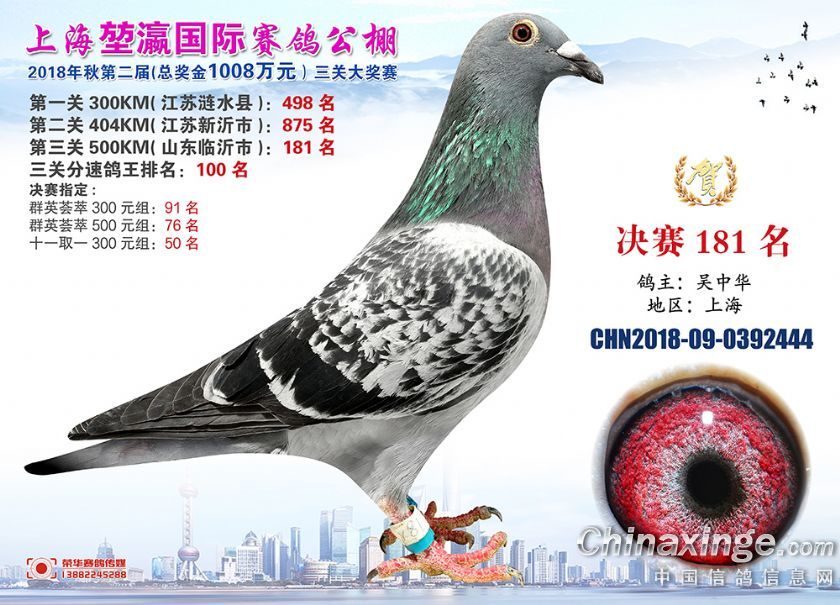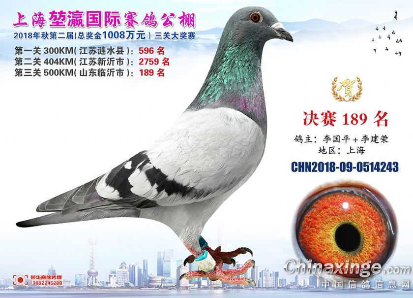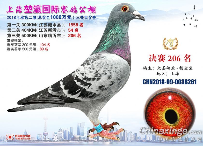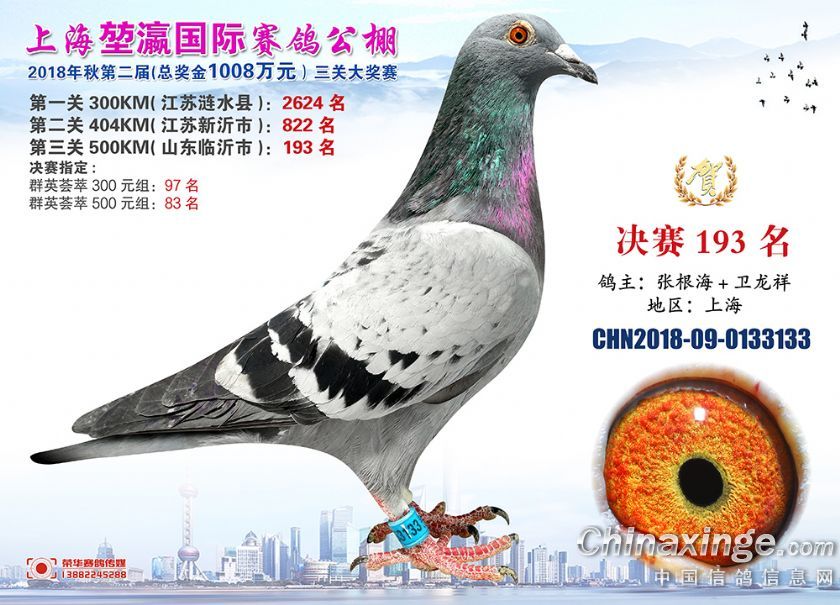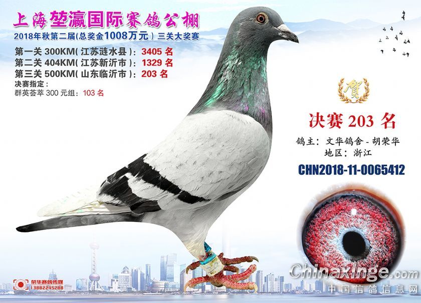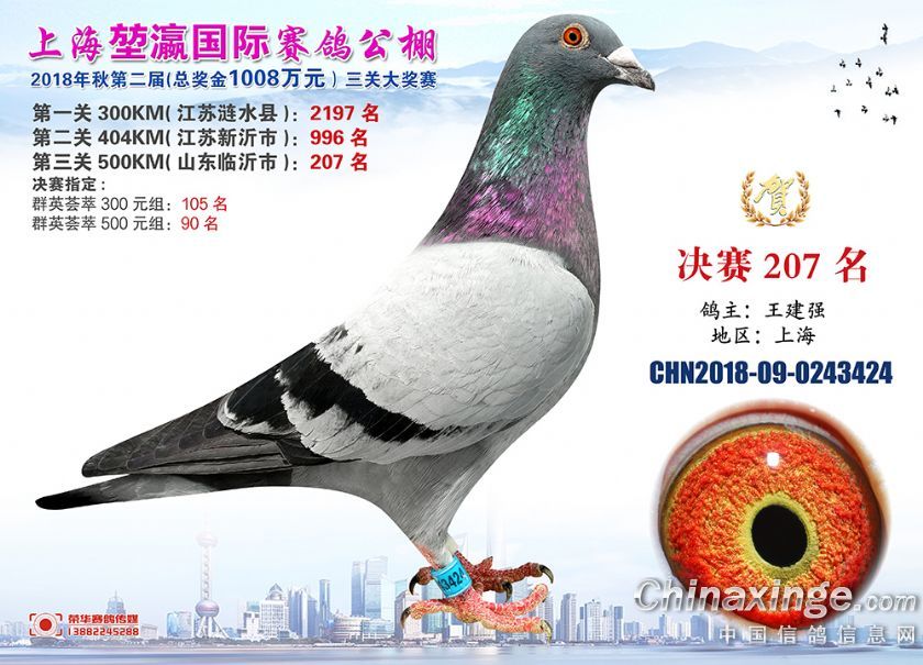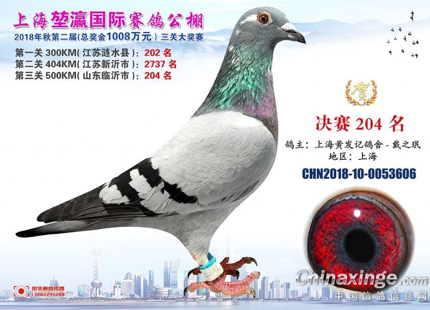 2018年上海堃瀛国际赛鸽俱乐部公棚获奖鸽照片181-210名
