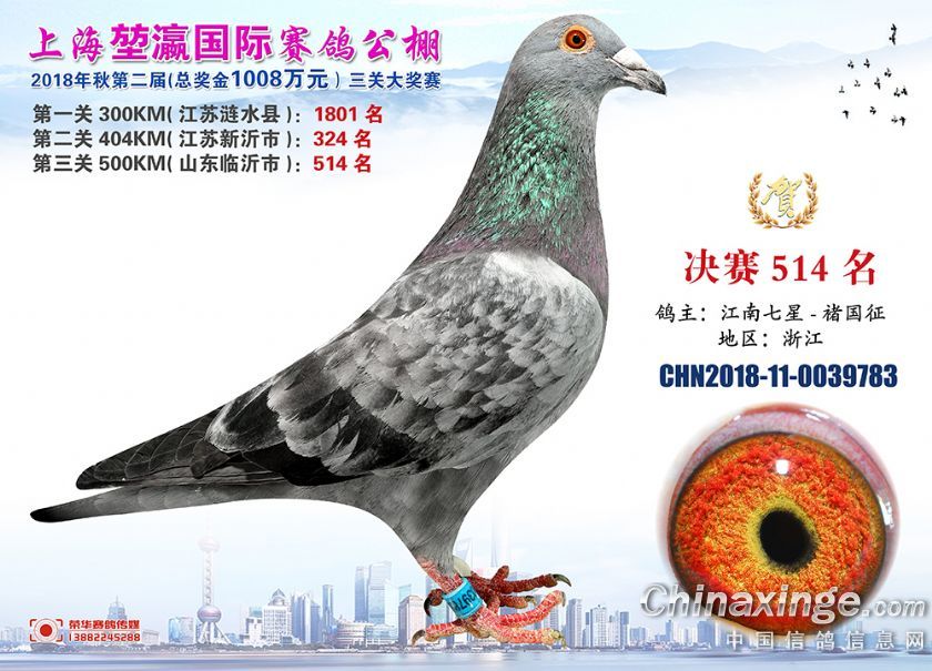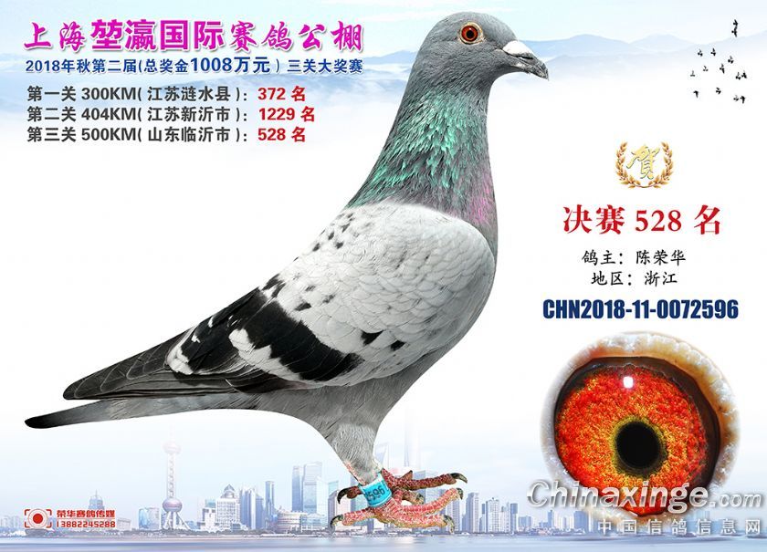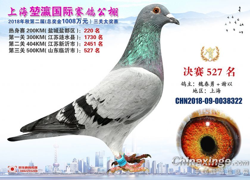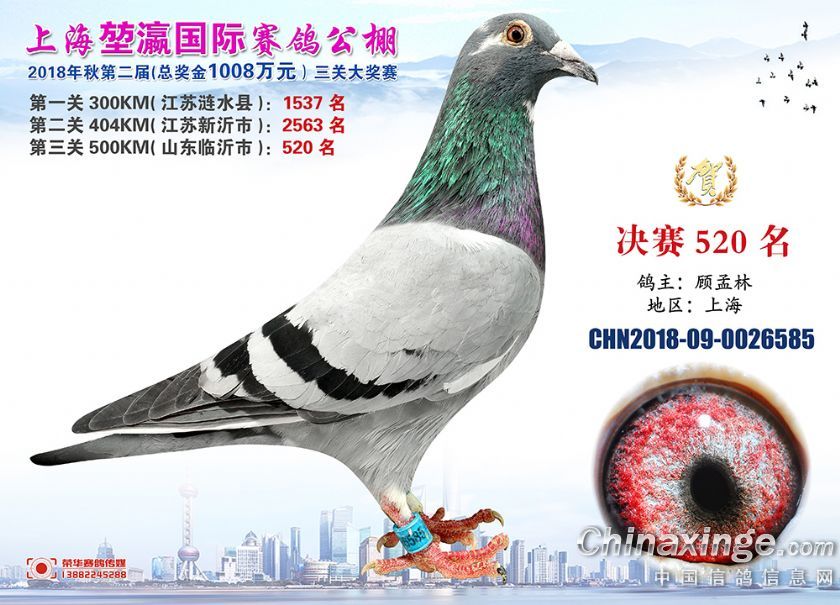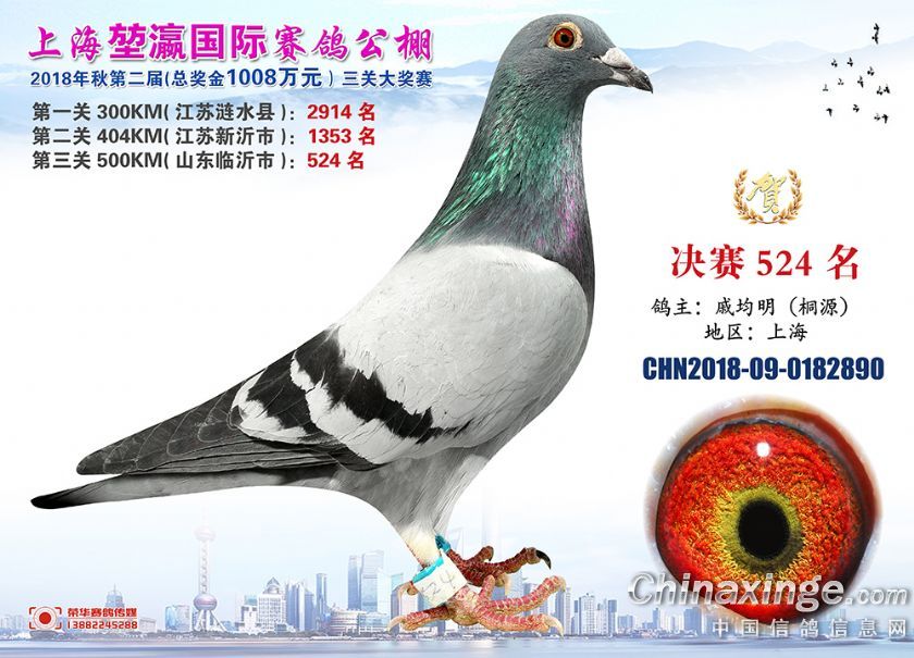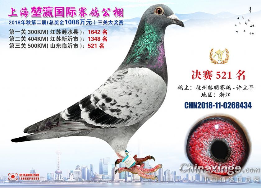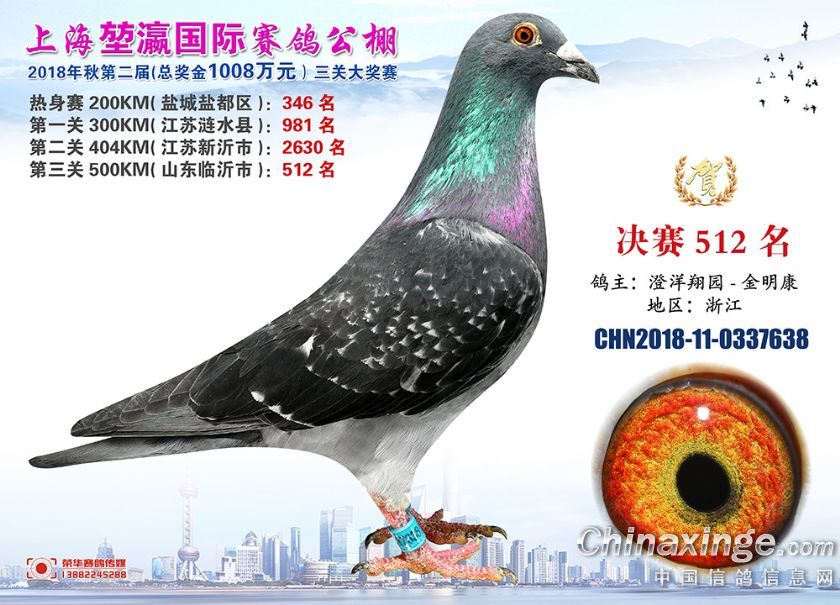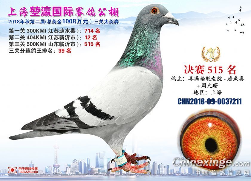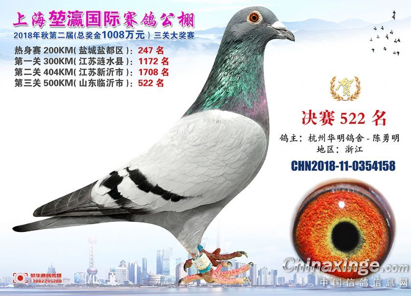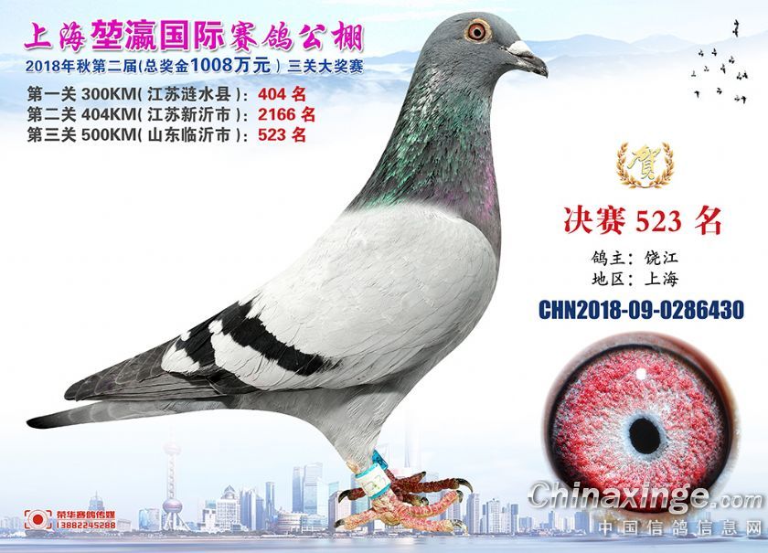 2018年上海堃瀛国际赛鸽俱乐部公棚获奖鸽照片511--540名